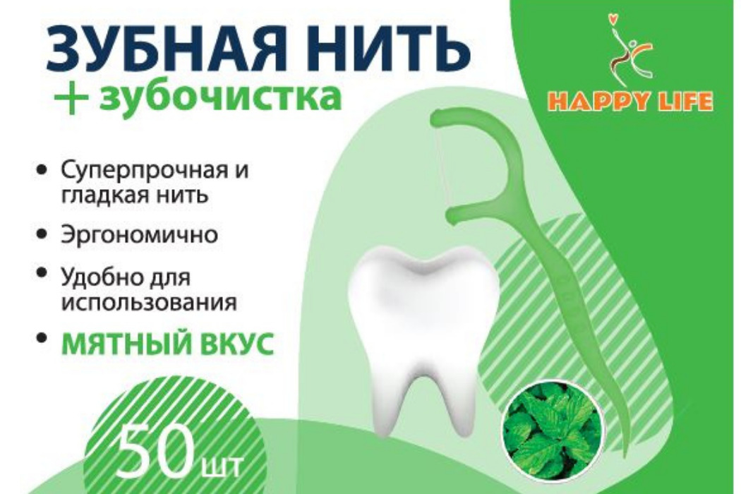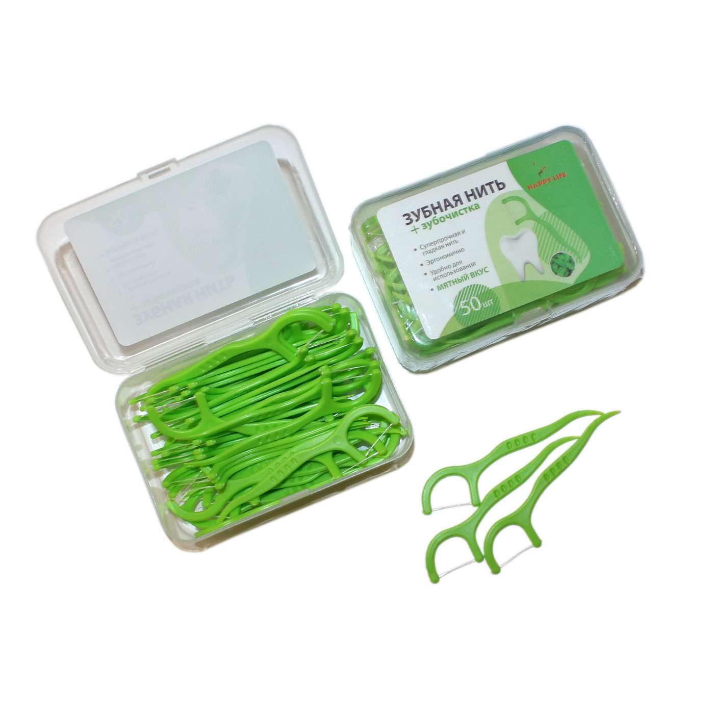 Зубная нить с зубочисткой / флоссеры Happy Life с мятой