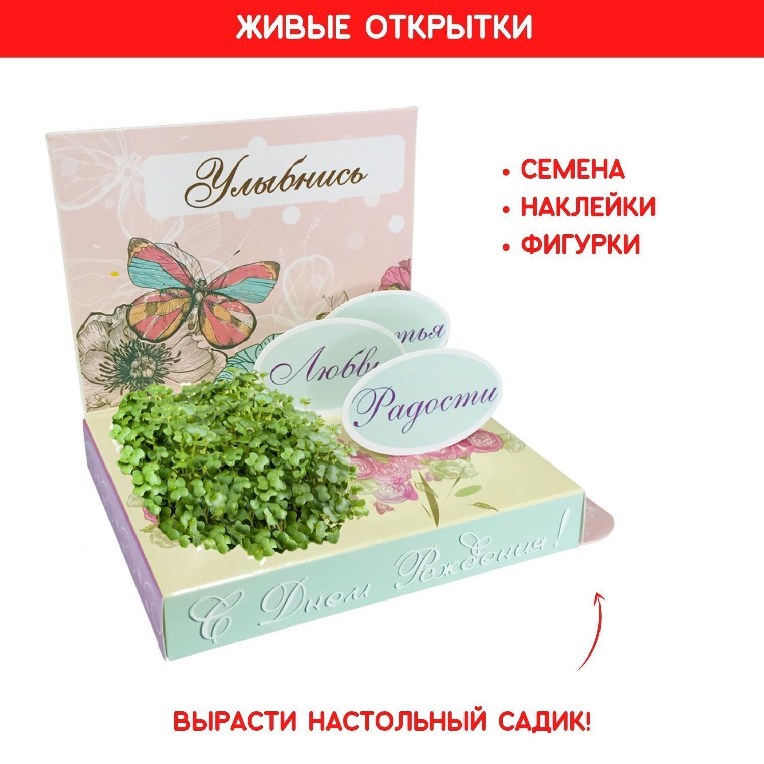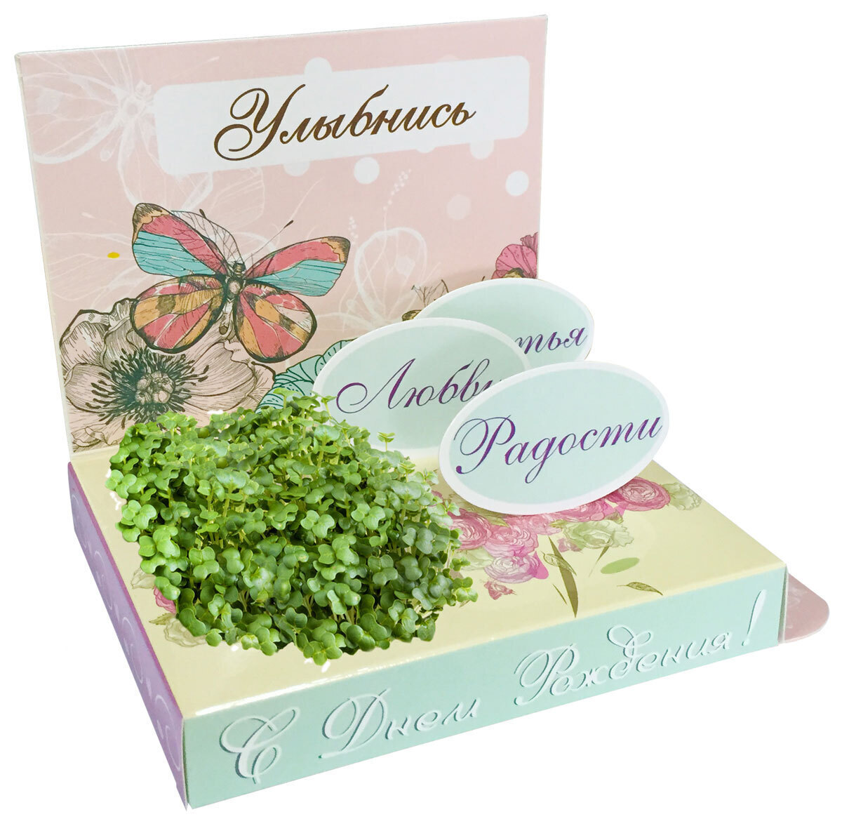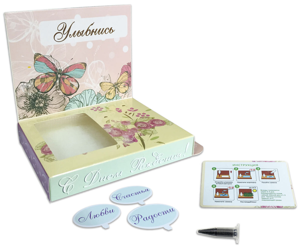 Набор для выращивания растений Happy Plant живая открытка "С днем рождения!" Бабочка