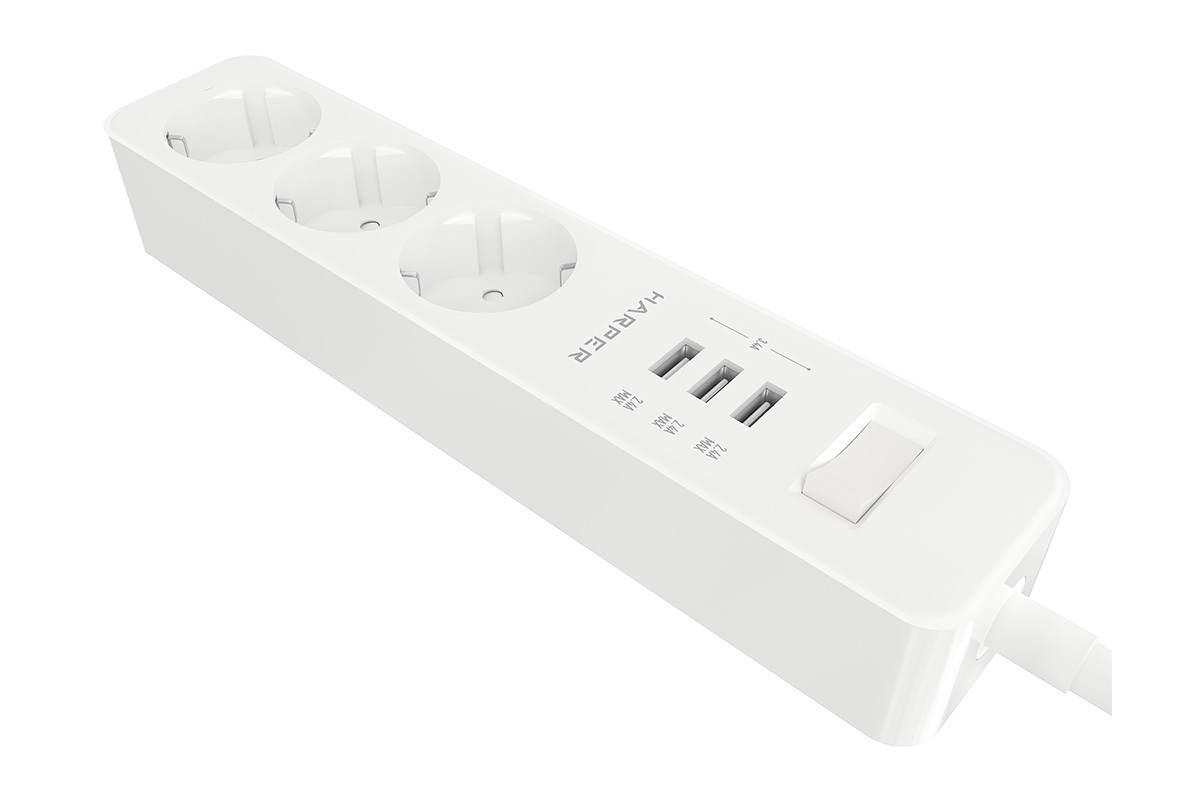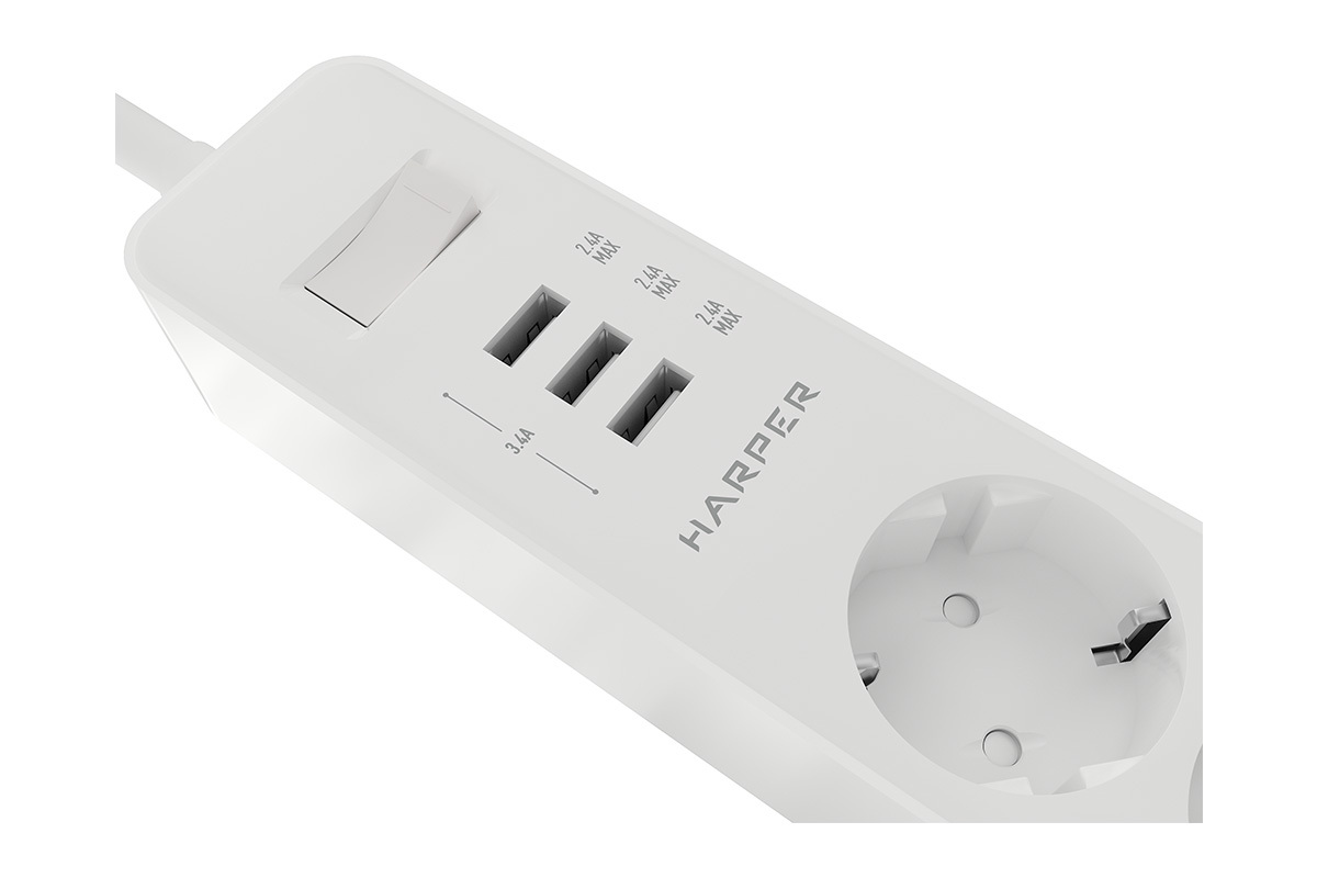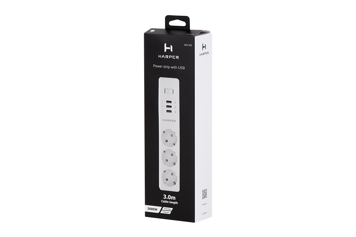Удлинитель с USB зарядкой HARPER UCH-650, черный