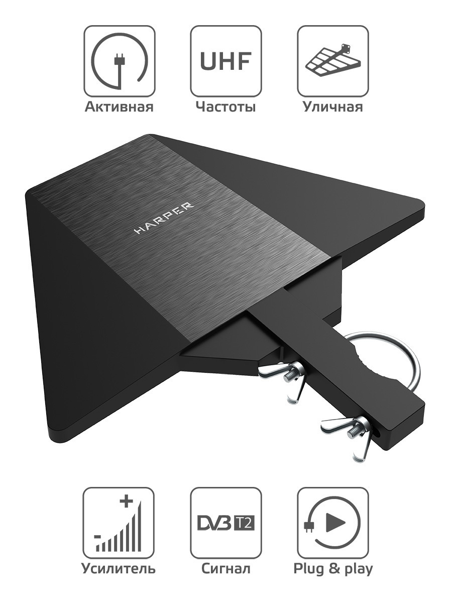 Телевизионная уличная антенна с усилителем, Harper ADVB-2128, черный