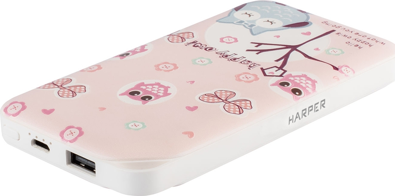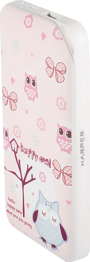 Внешний аккумулятор Harper Power Bank PB-0016 Owl, 10 000 мА•ч, USB, розовый