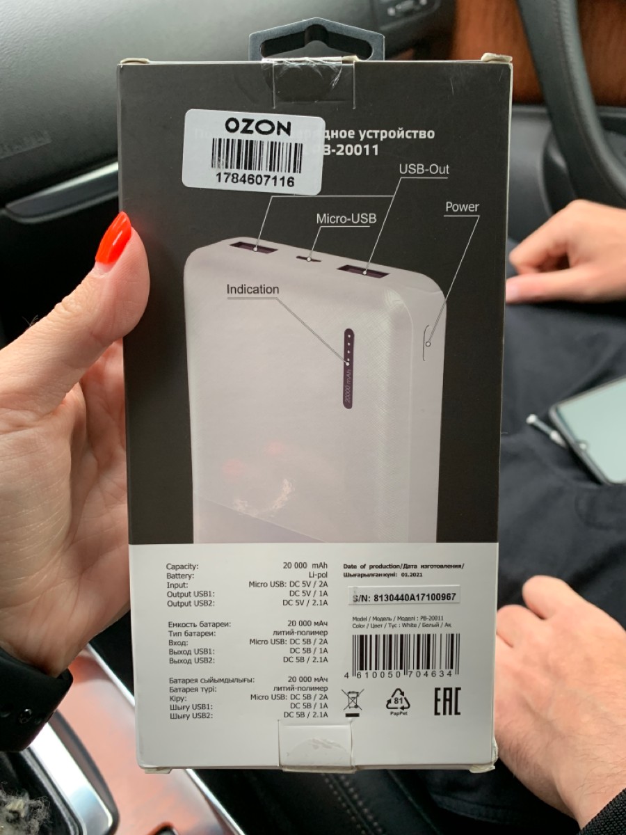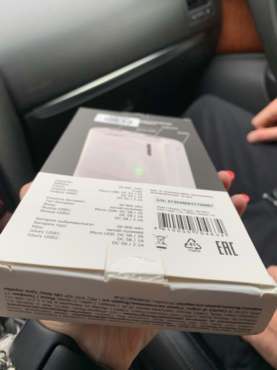 Внешний аккумулятор Harper Power Bank PB-20011, 20 000 мА•ч, USB, белый