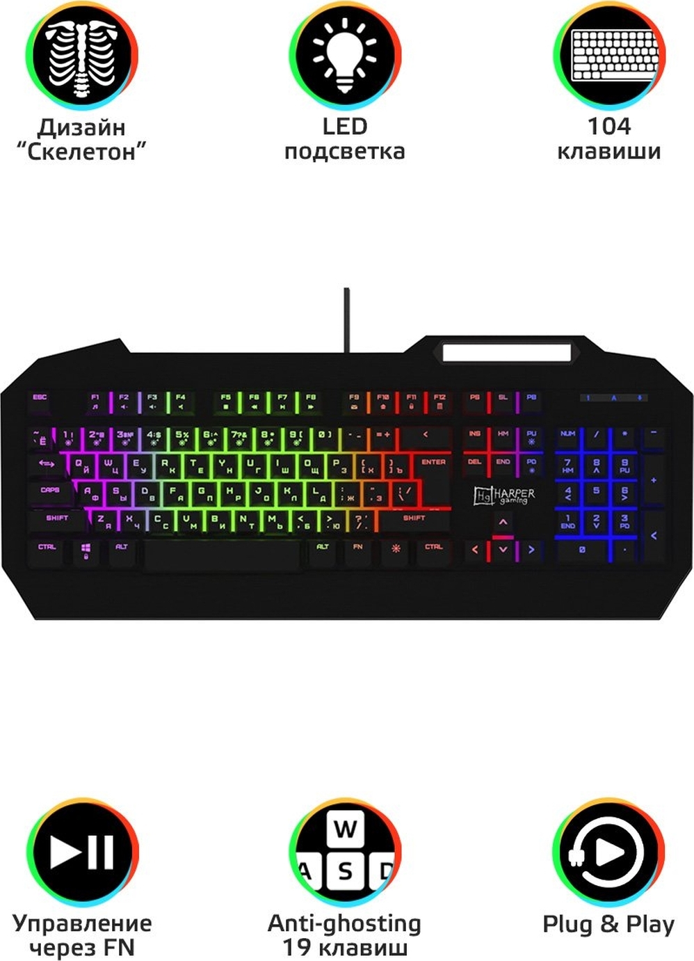 Игровая клавиатура проводная Harper Gaming Fulcrum GKB-20, черный