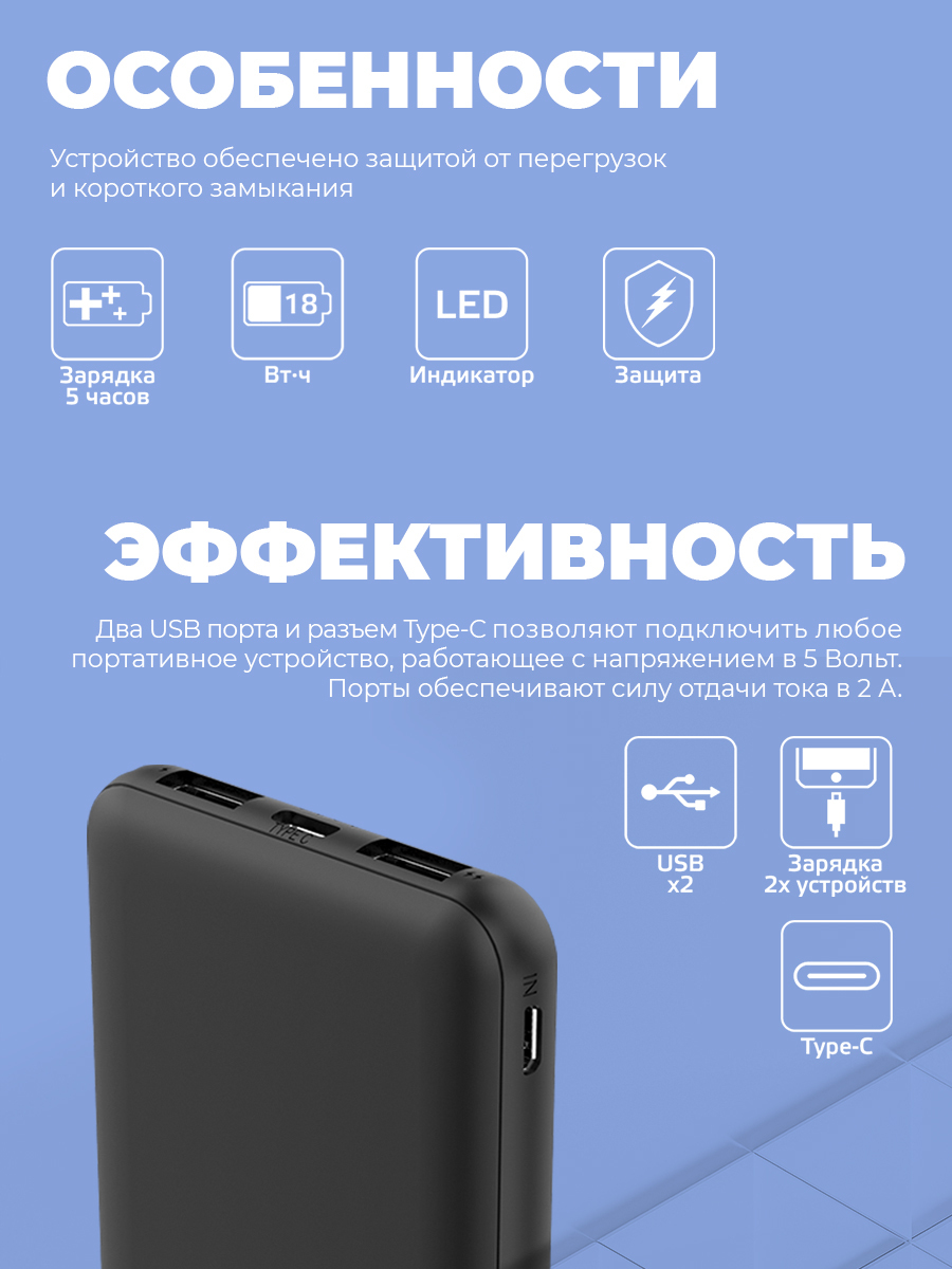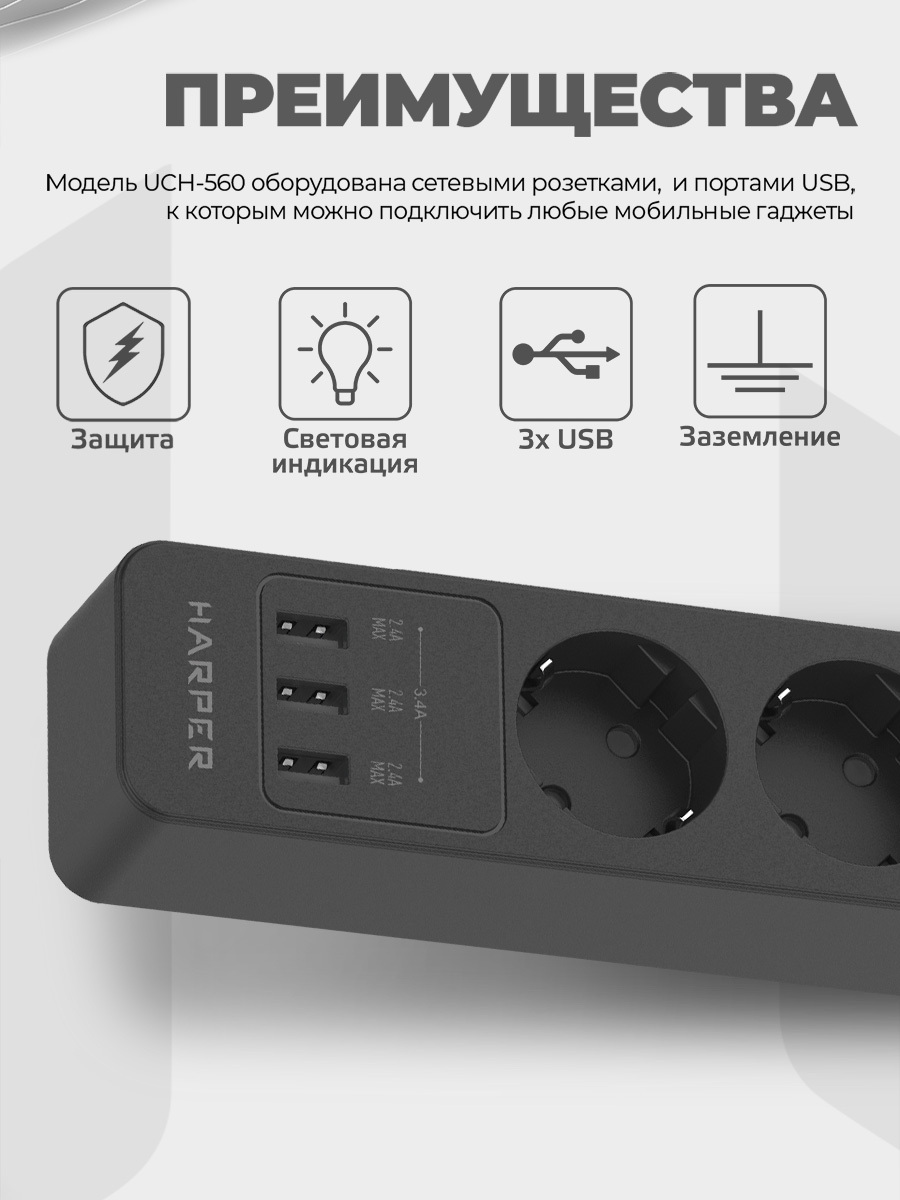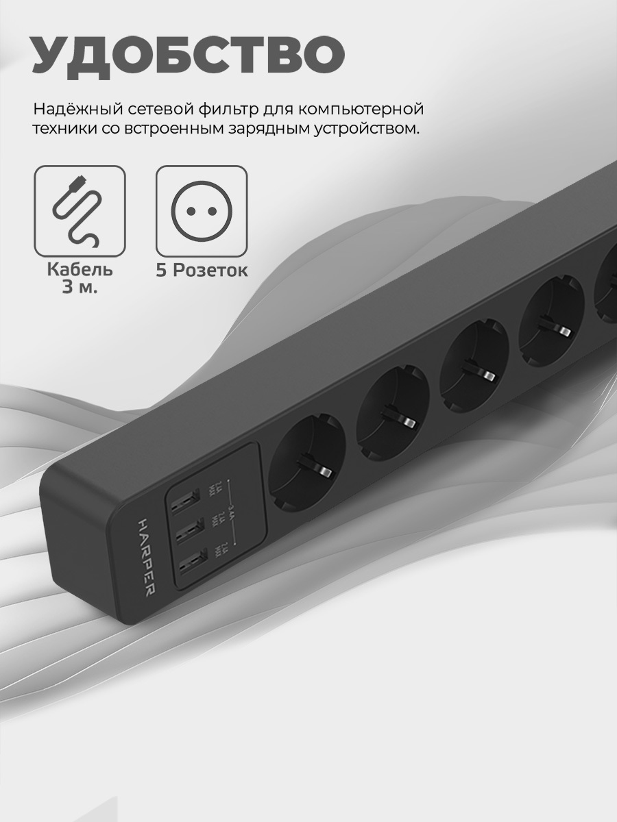 Зарядное устройство Harper WCH-5118, Type-C, 2.1A, 0.8 м, черный