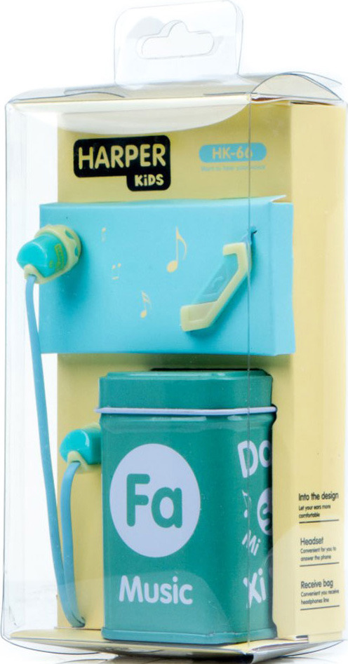 Наушники внутриканальные Harper Kids HK-66, с микрофоном, 3.5 мм, голубой