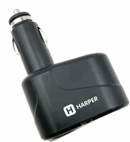 Разветвитель прикуривателя на 3 гнезда + 2хUSB (HARPER DP-330) (черный) - Разветвитель прикуривателя