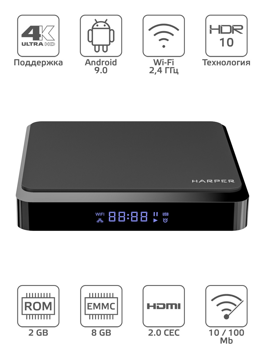 Медиаплеер Android 9.0 / Smart TV приставка Harper ABX-230, черный