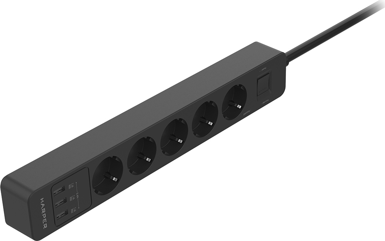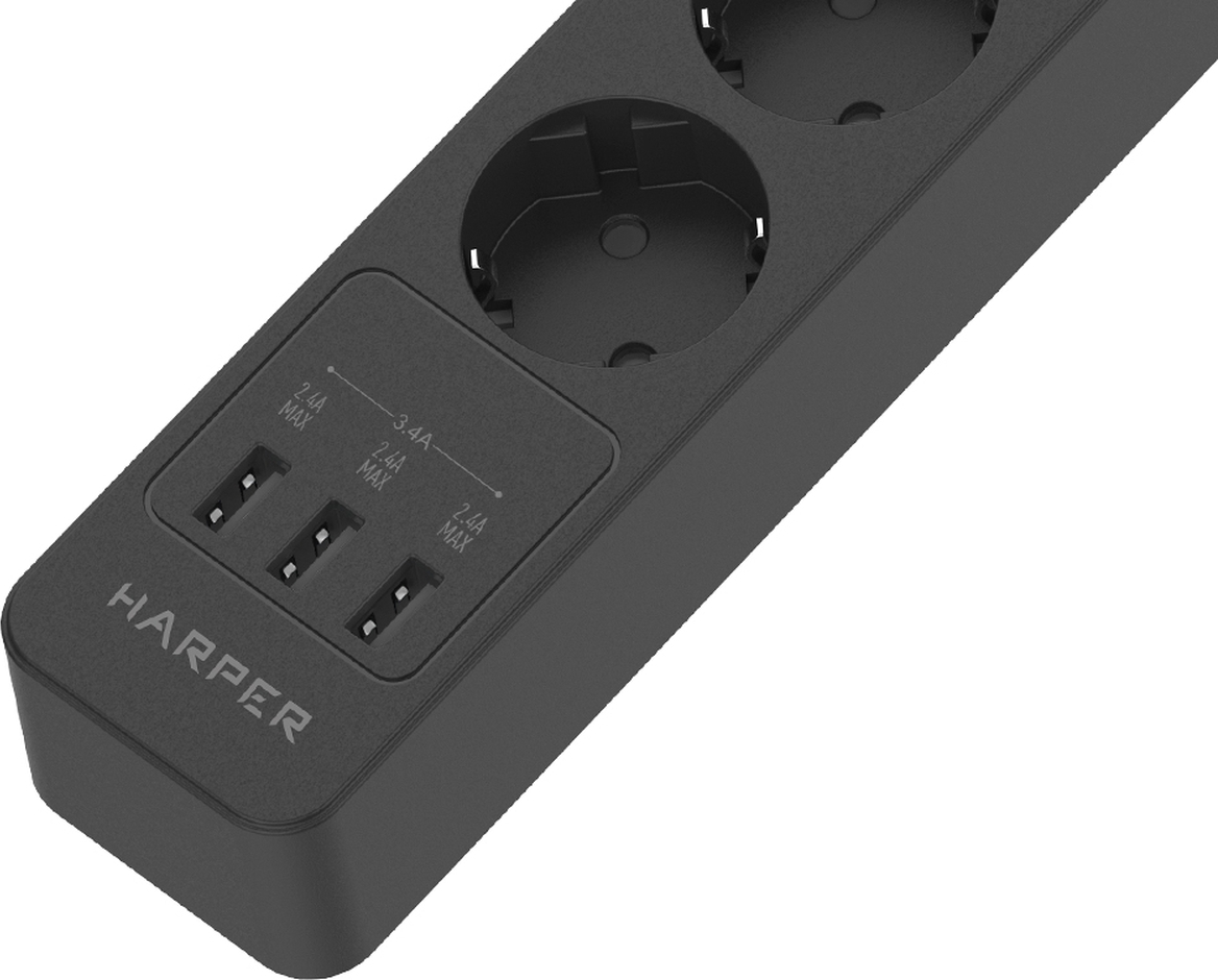 Удлинитель с USB зарядкой HARPER UCH-550, черный