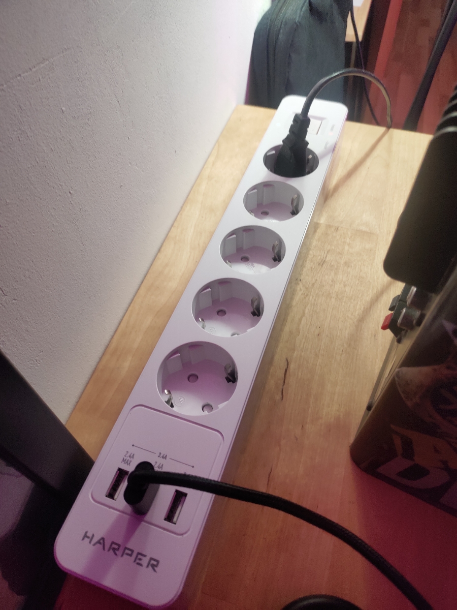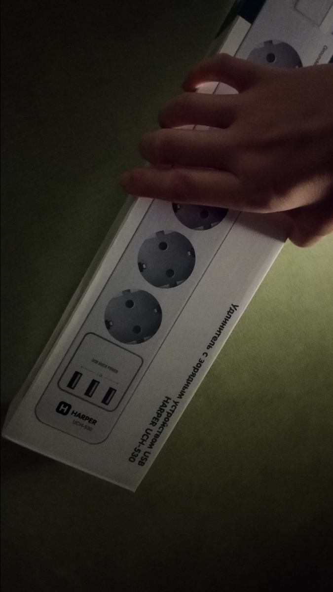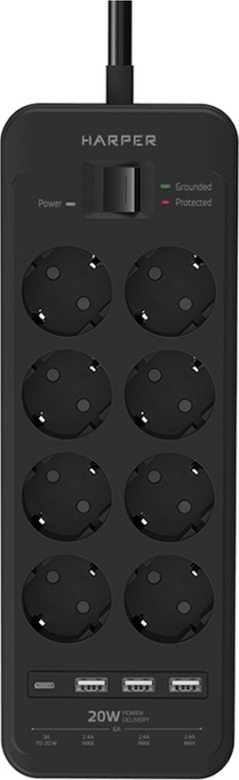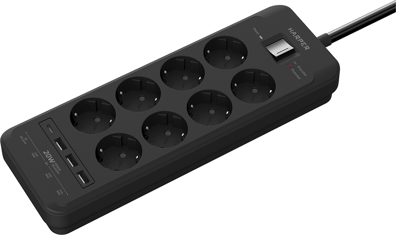 Сетевой фильтр (удлинитель) Harper UCH-530, 5 розеток, 3xUSB Type-A, 16А, 1.5 м, черный