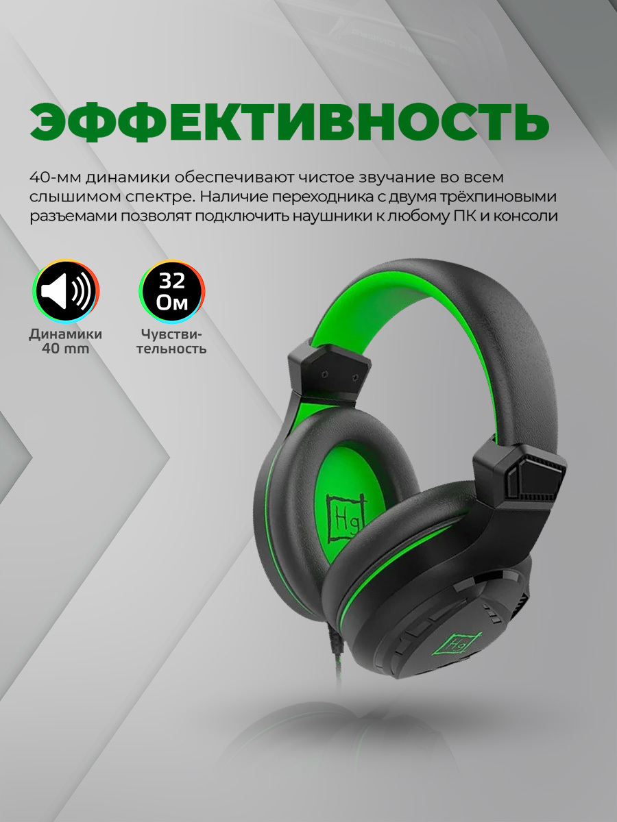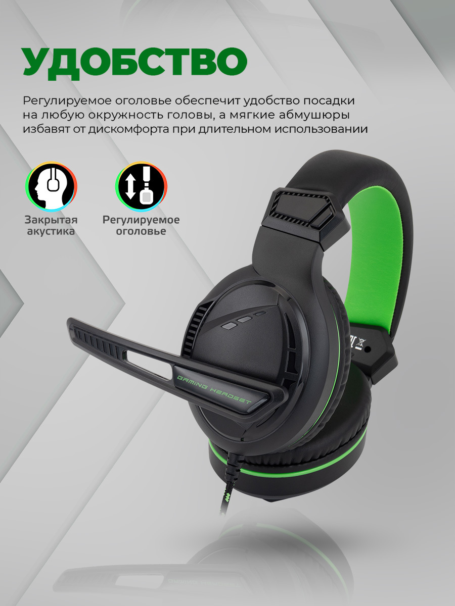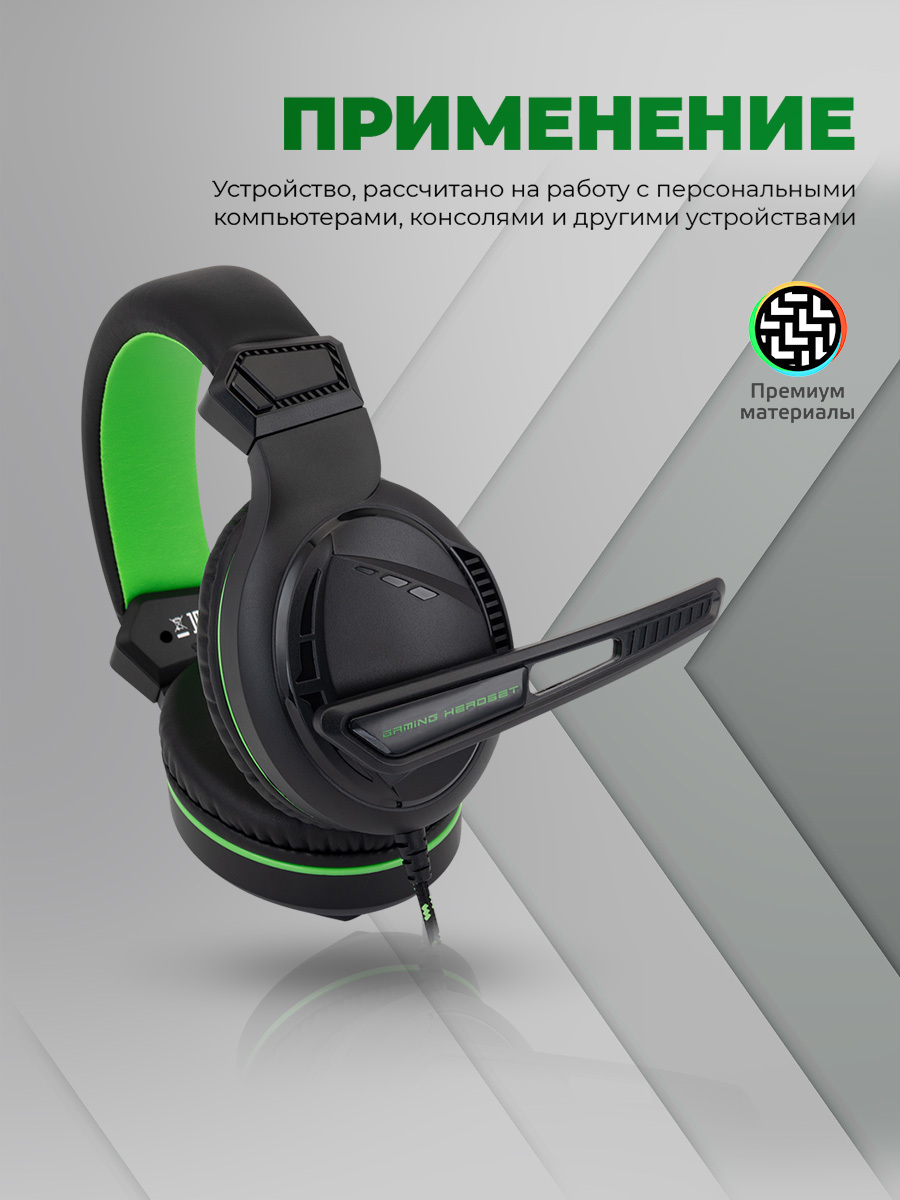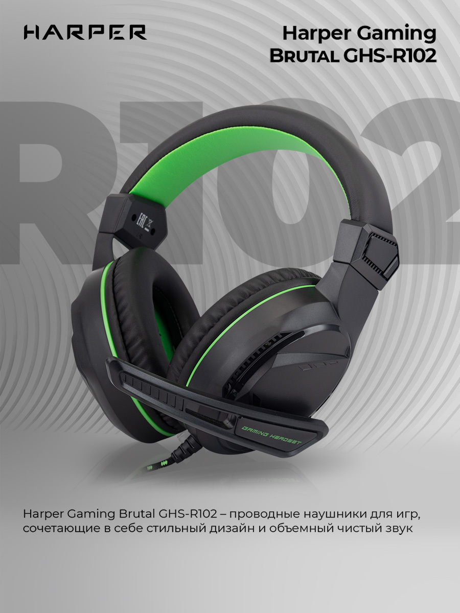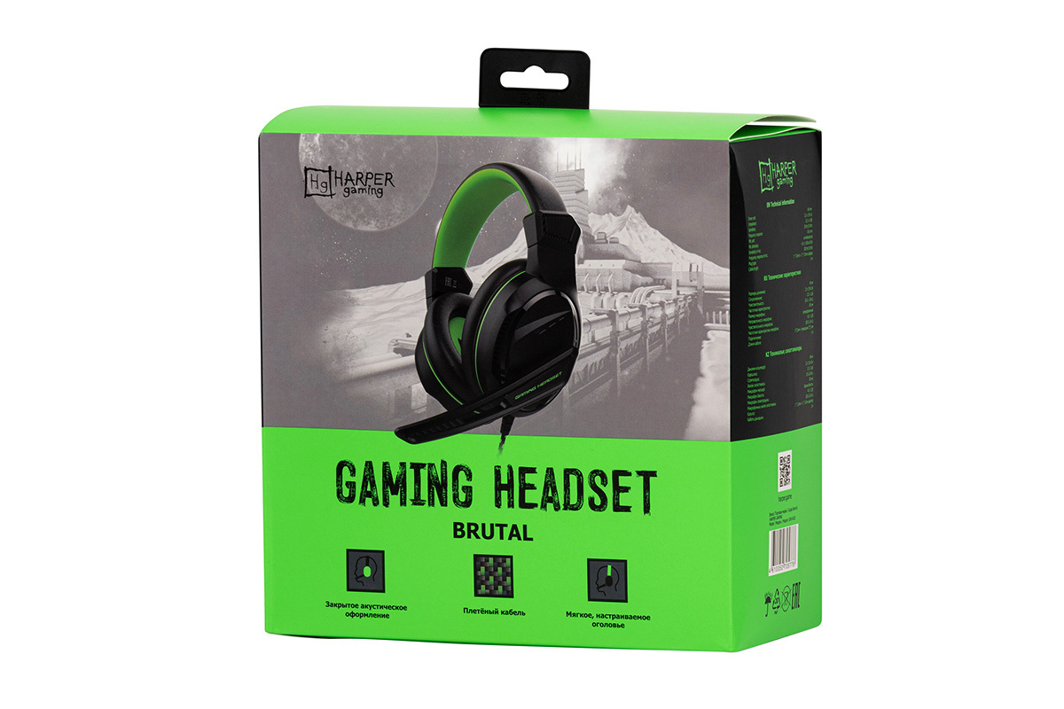 Игровые наушники Harper Gaming Brutal GHS-R102, черный, зеленый