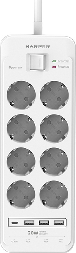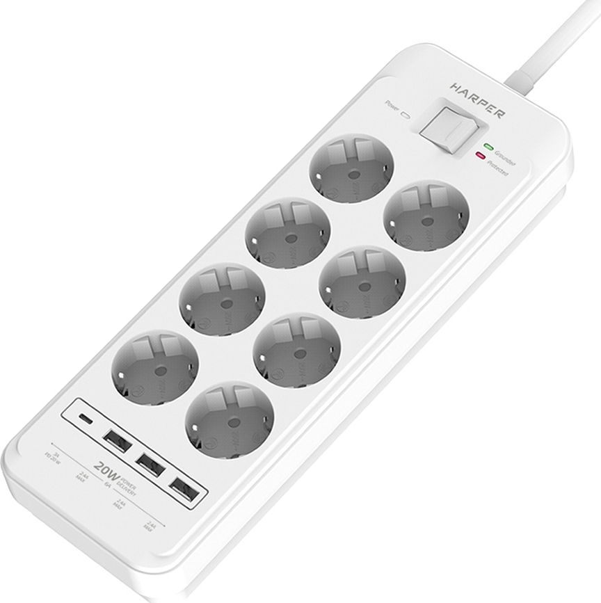 Удлинитель с USB зарядкой HARPER UCH-650, белый