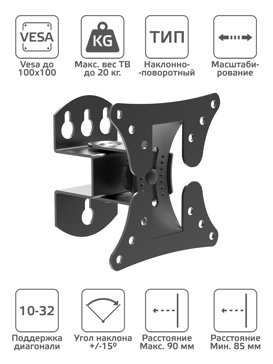 Кронштейн для телевизора наклонно-поворотный 10-32 дюйма, Harper TVF-3