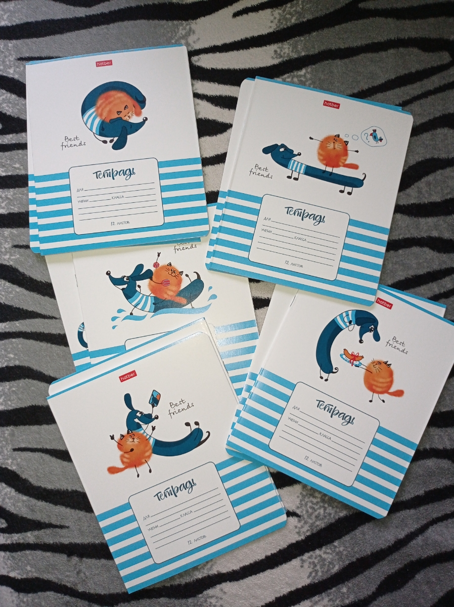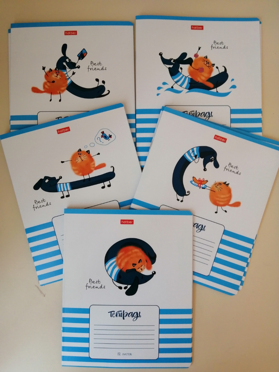 Набор тетрадей Hatber "Best Friends" 10 шт/5 дизайнов 12 листов в клетку скругленные уголки