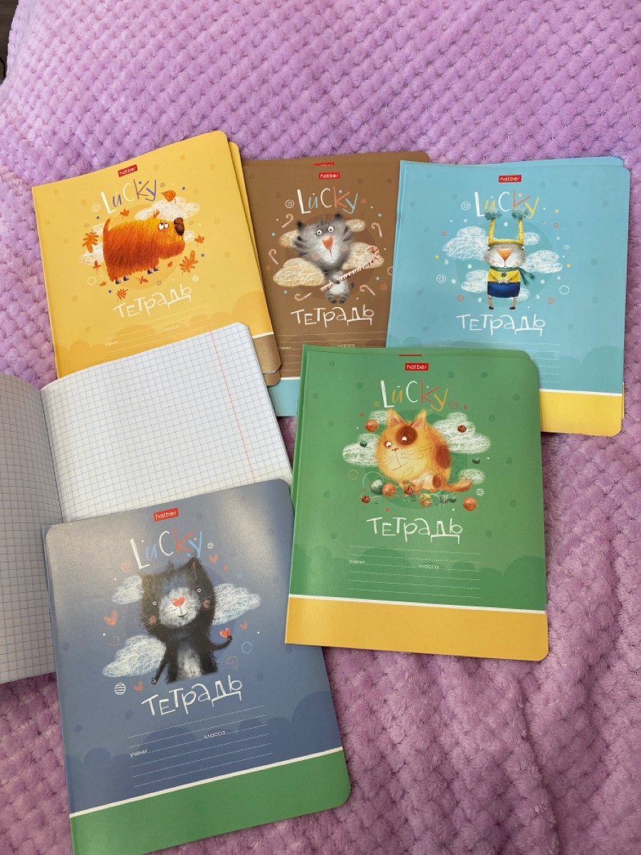 Набор тетрадей 10 шт/5 дизайнов Hatber 12 листов, в клетку, скругленные уголки "Счастливчики"