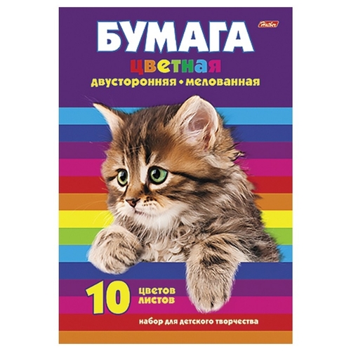 Цветная бумага двусторонняя мелованная Котенок Hatber, A4, 10 л., 10 цв.