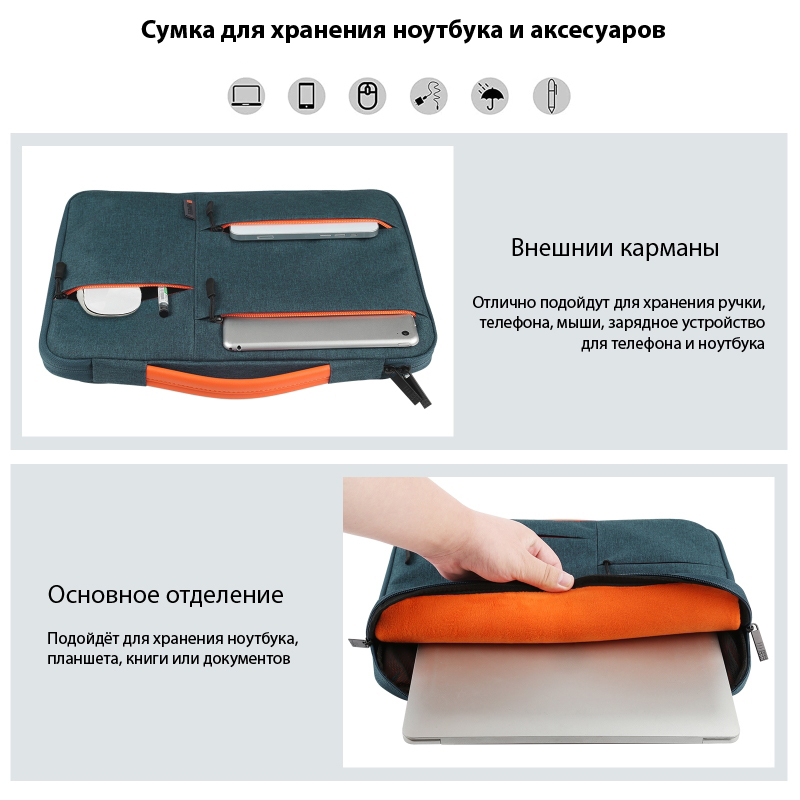 Тонкая сумка для ноутбука до 15 дюймов (HAWEEL HWL2165) Цвет: синий