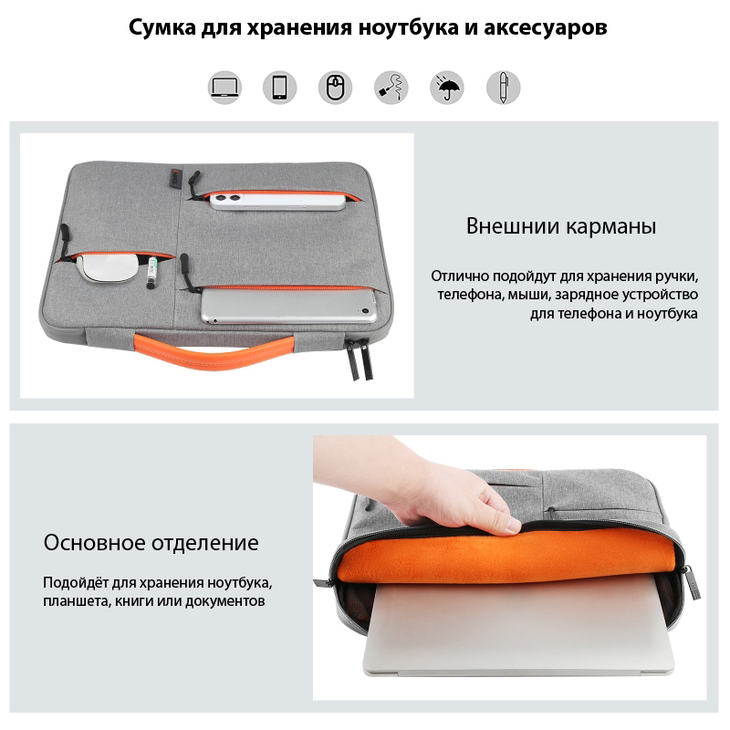 Универсальный чехол-карман для ноутбука до 11 дюймов (HAWEEL HWL2811) Цвет: серый