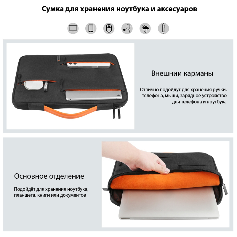 Универсальный чехол-карман для ноутбука до 15 дюймов (HAWEEL HWL2815) Цвет: чёрный