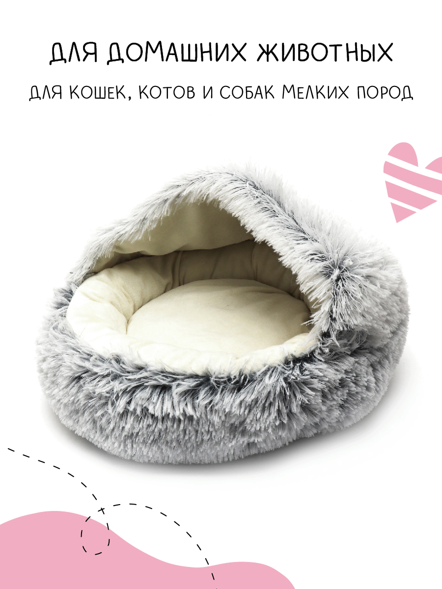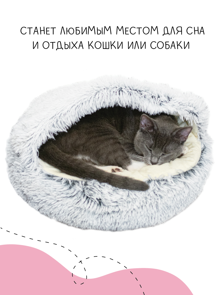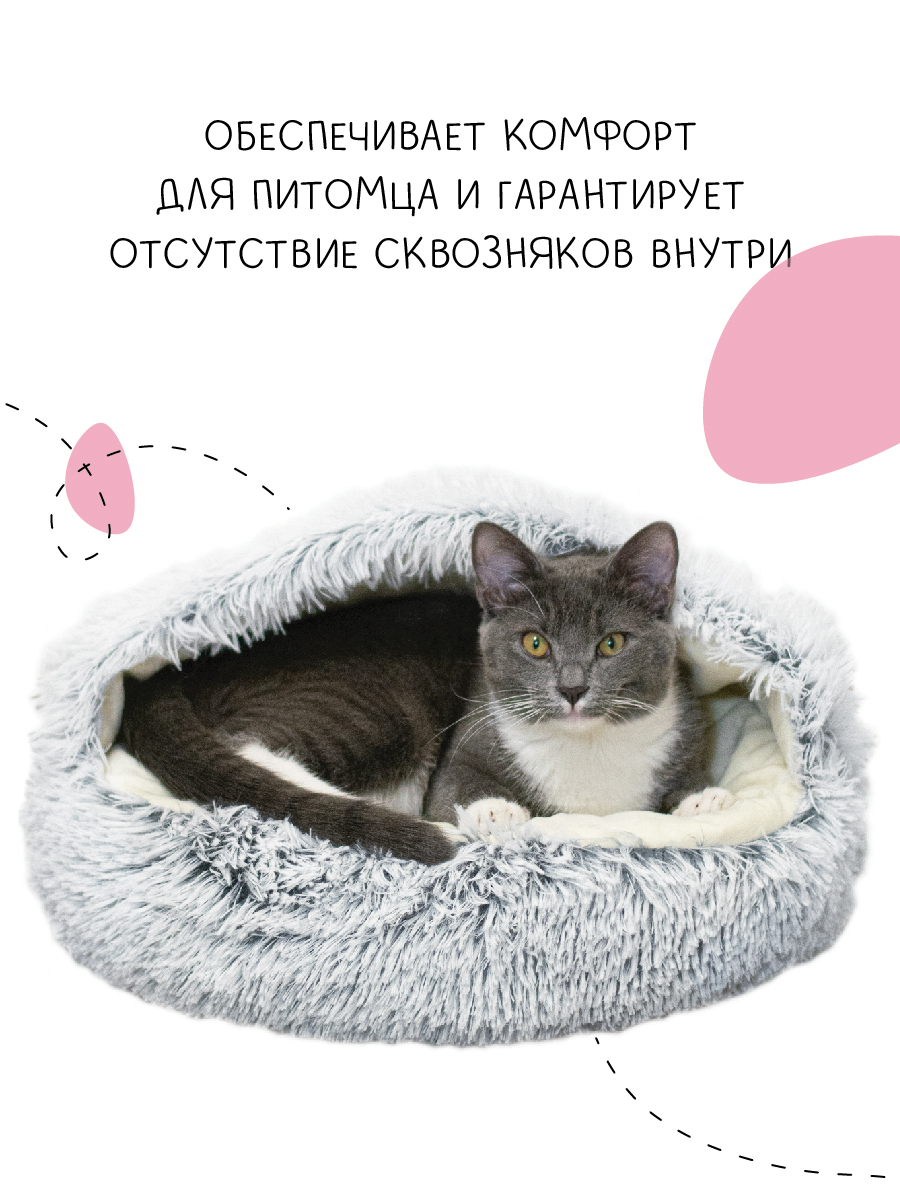 Домик для кошки мягкий - Дом для кошки - Лежанка Jinx - Серая - 50*50*16 см