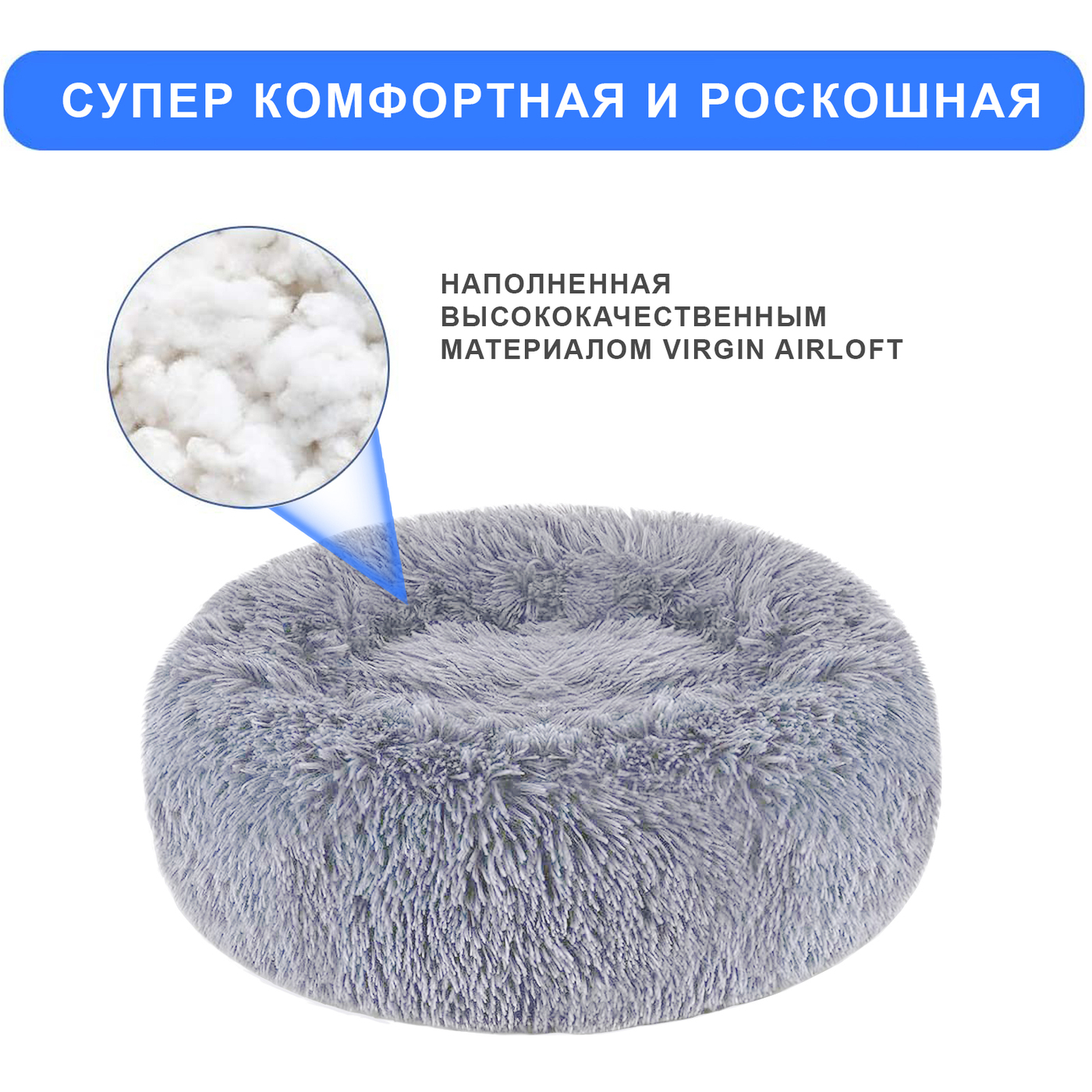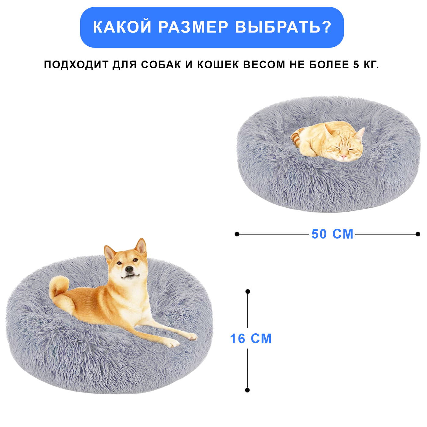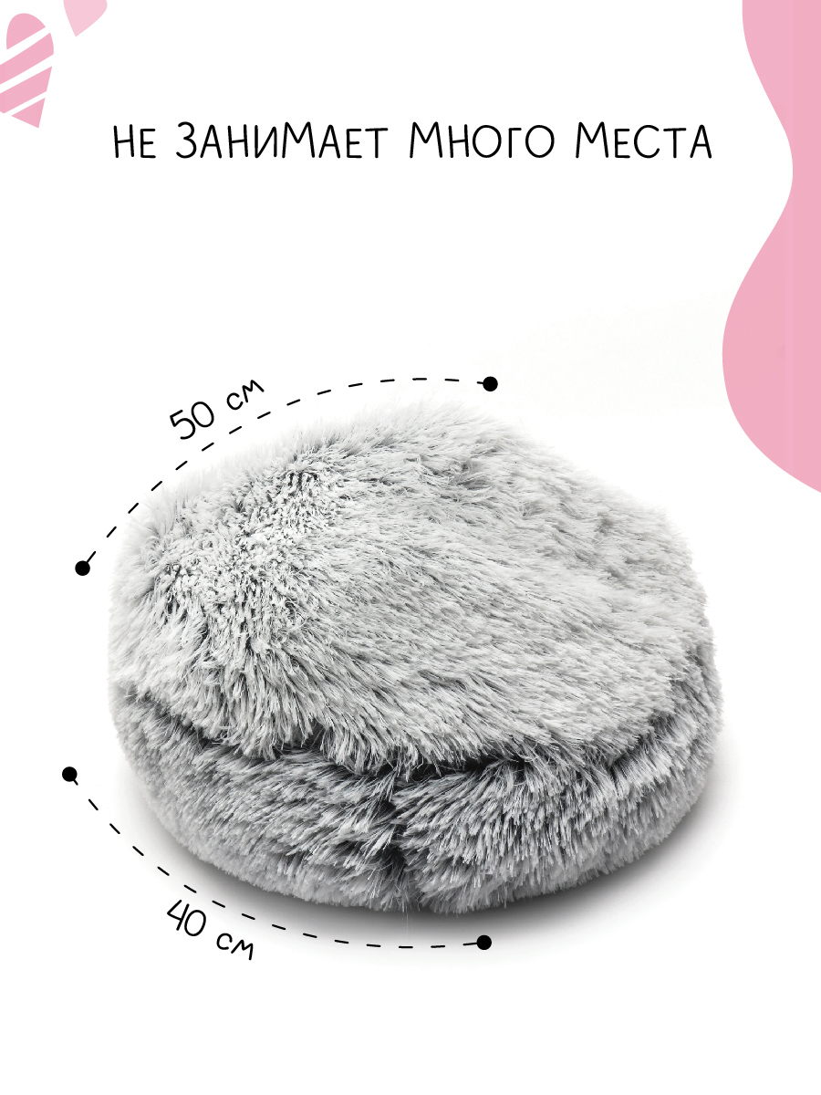 Лежанка для собак - Лежанка для кошки - Новинка 2021 - ROXE - Серая - 50*50*16 см.