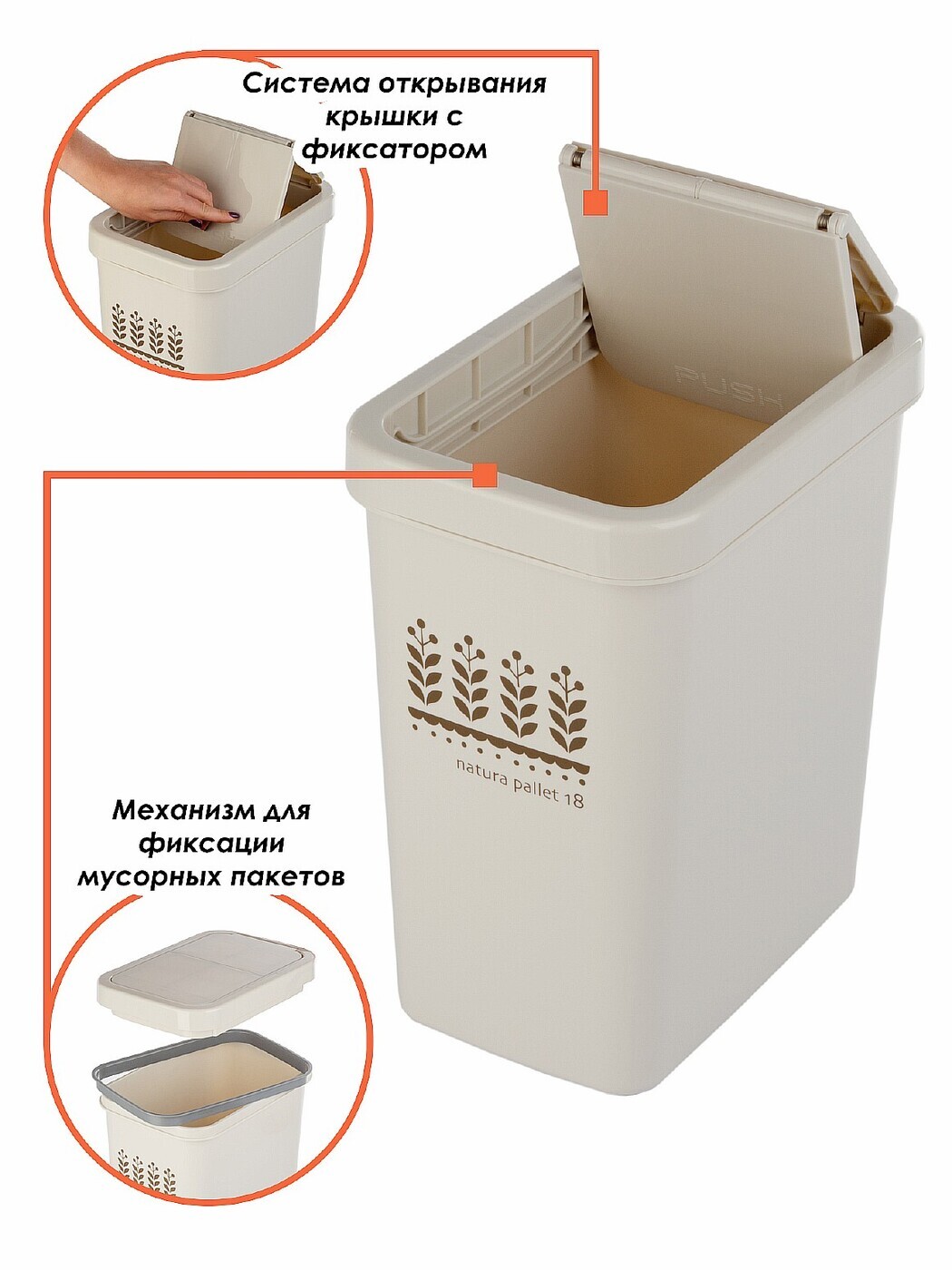 Мусорное ведро Heiwa, 18 л, 1 шт