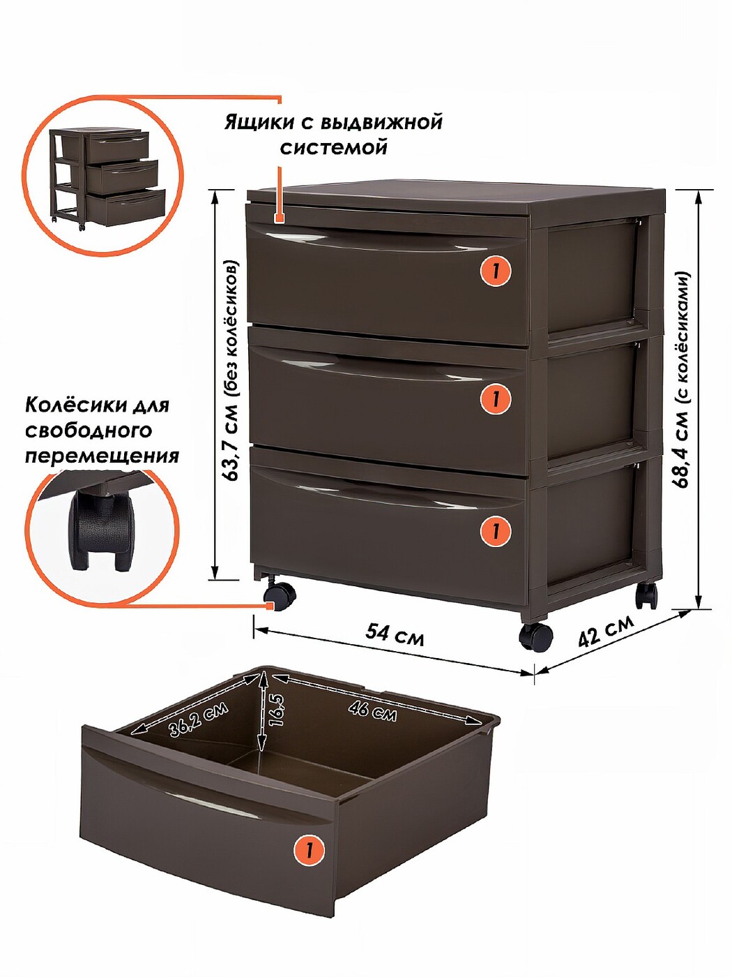 Комод 206268, 3 ящ., 54х42x68.4 см, Heiwa
