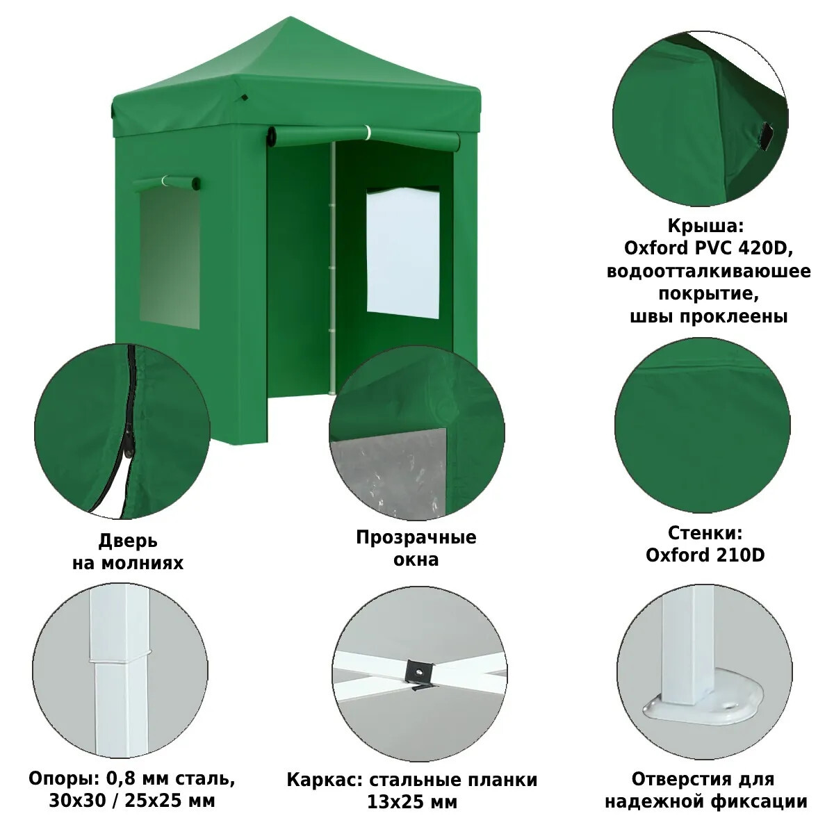 Тент садовый Helex 4220 2х2х3м полиэстер, зеленый, от солнца, быстрая сборка