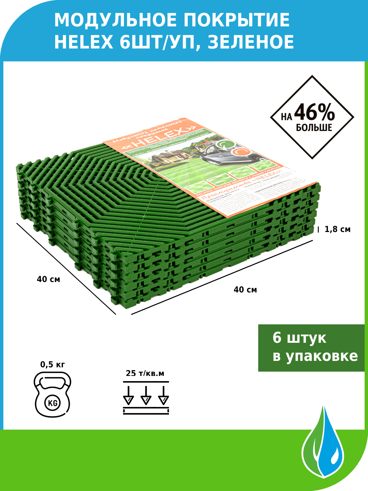 Модульное покрытие Helex 6шт/уп, зеленый
