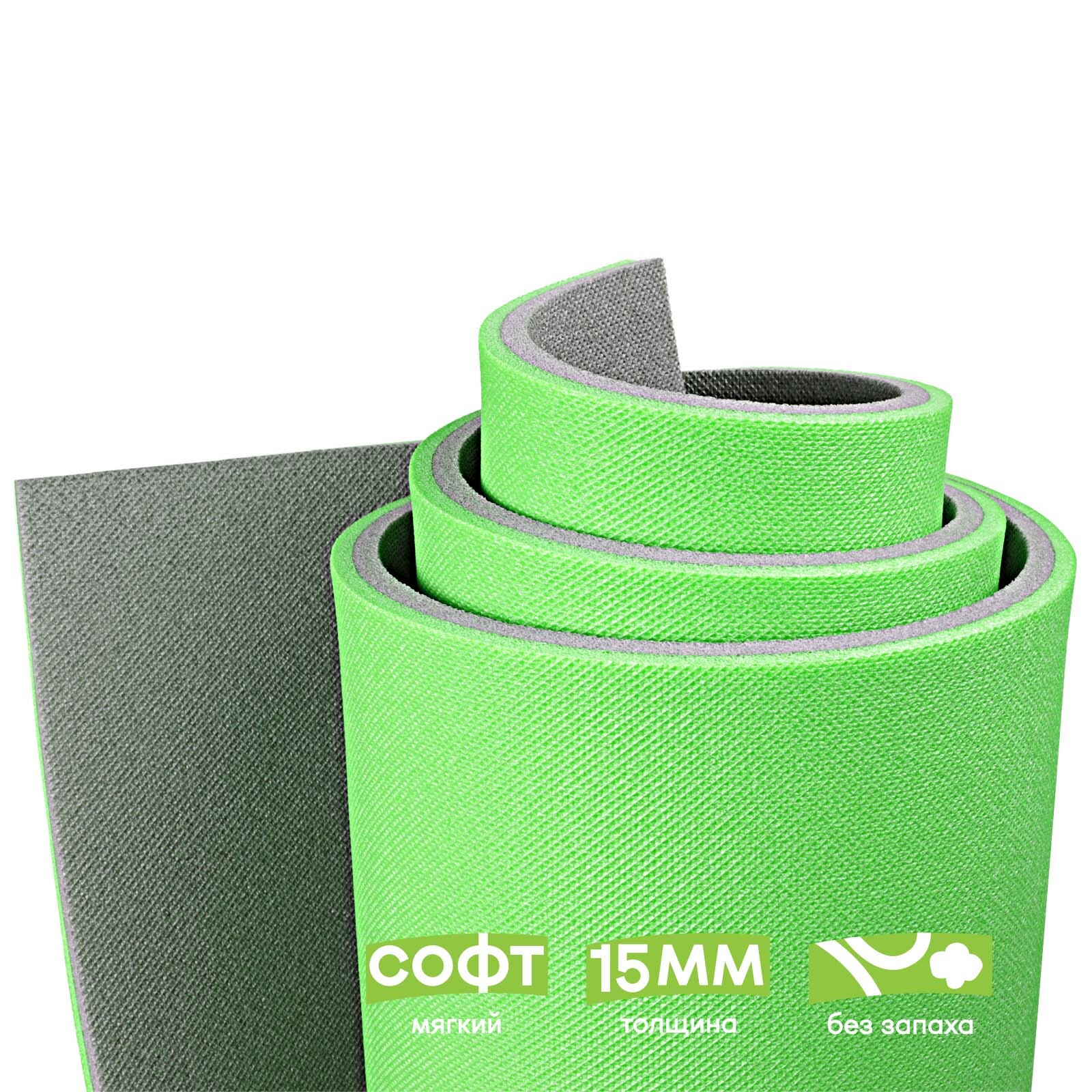 Коврик-каремат для йоги и фитнеса soft 15mm 180x60cm, салатовый / серый