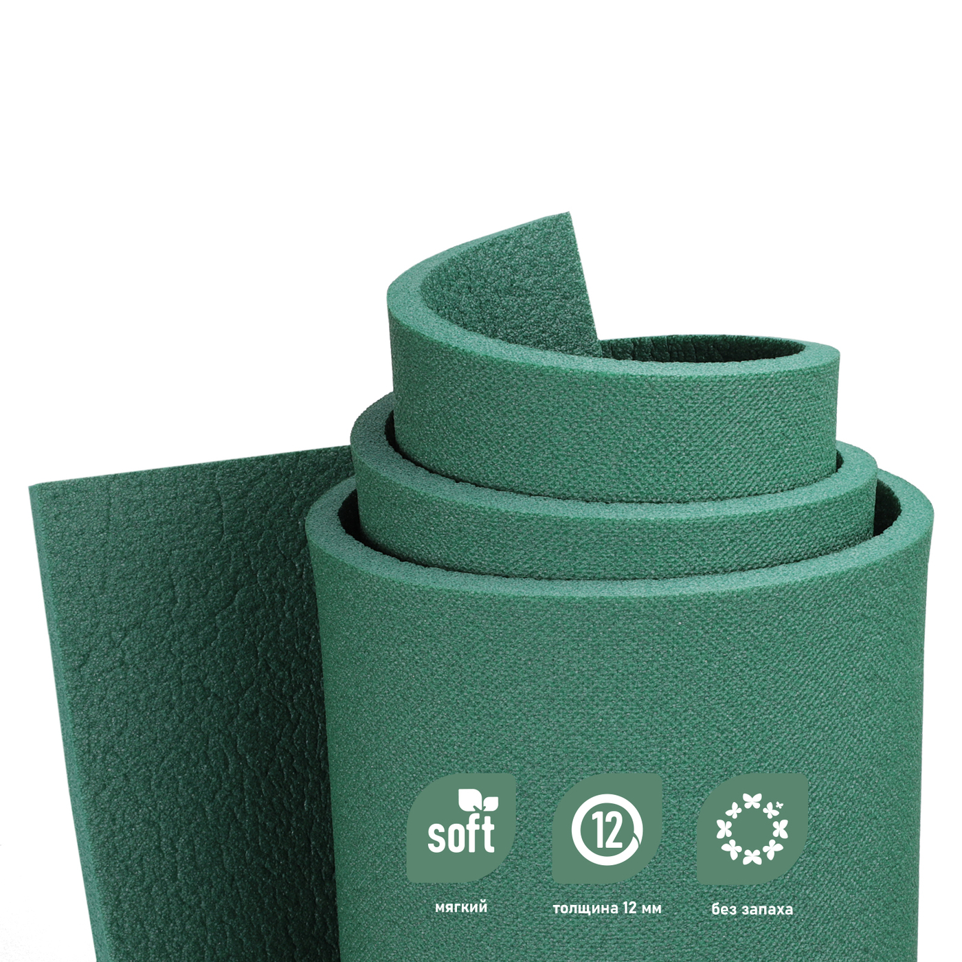 Коврик для йоги и фитнеса soft 12mm 180x60cm, темно-зеленый