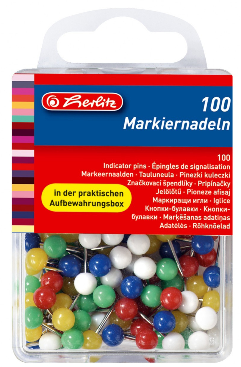 Булавки с цветными головками 100шт