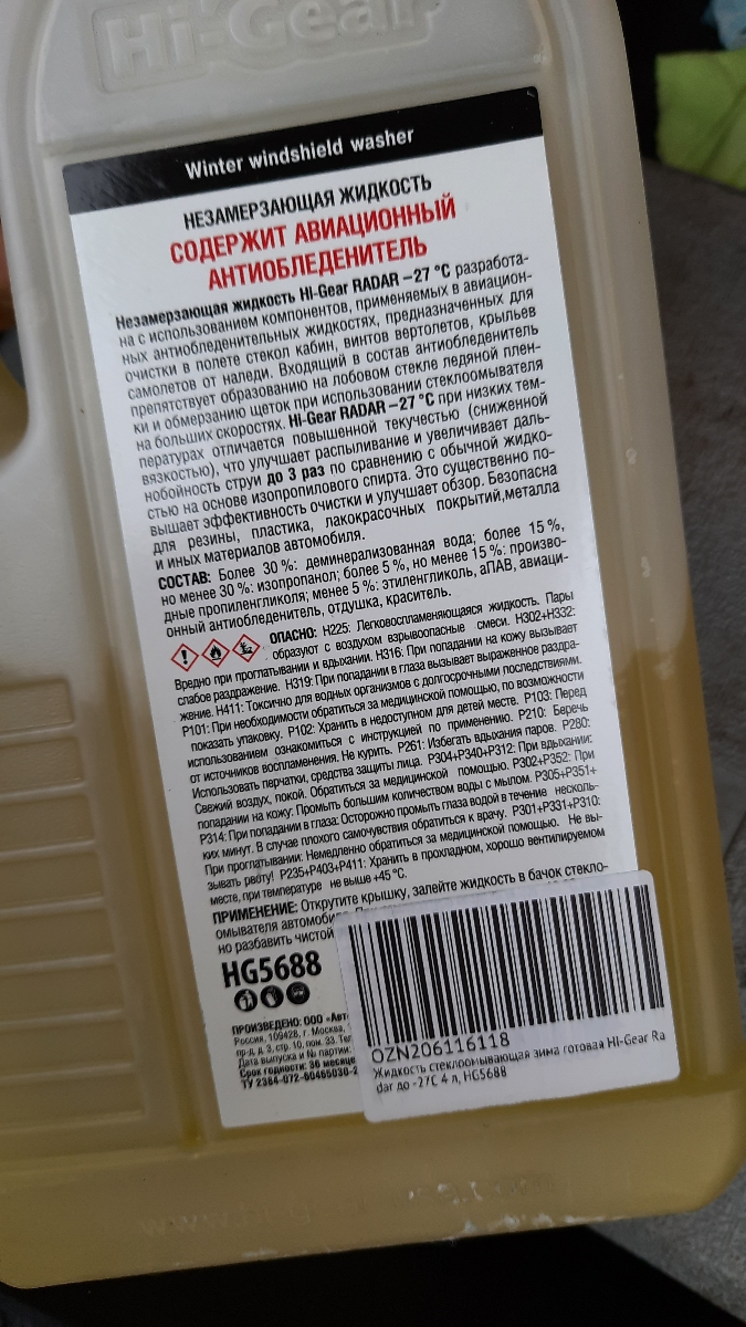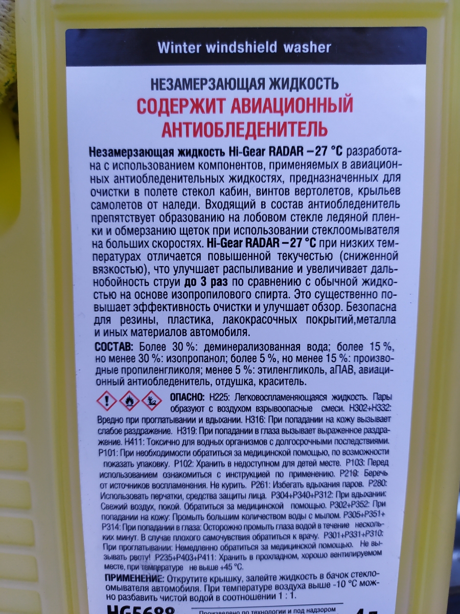 Жидкость для стеклоомывателя Hi-Gear, зимняя, HG5686, 4 л