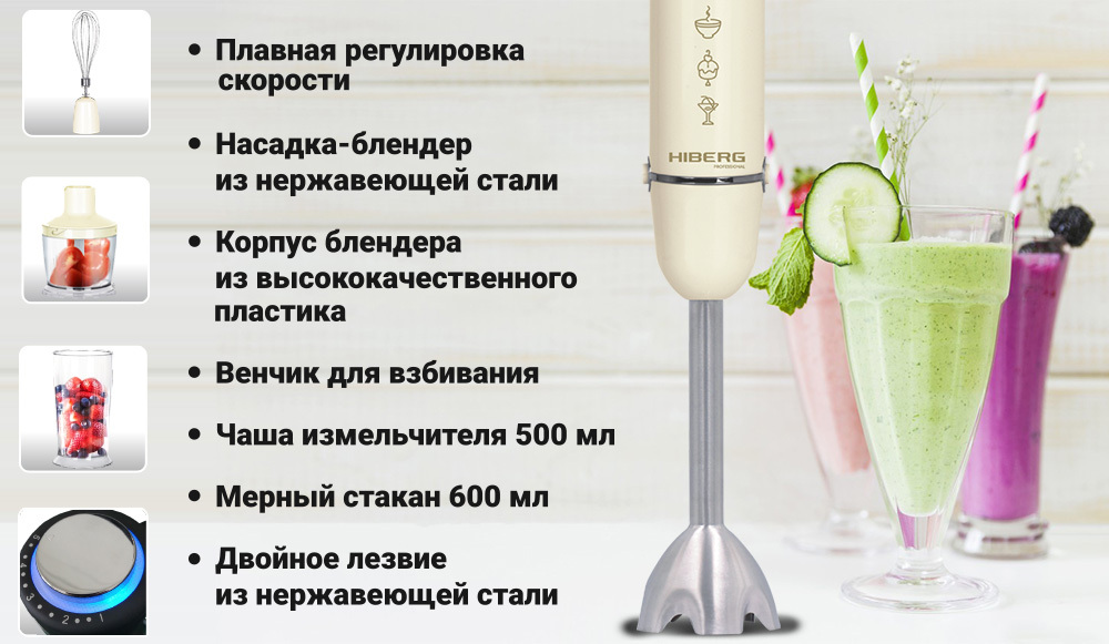 Погружной блендер Hiberg HB1040Y, бежевый