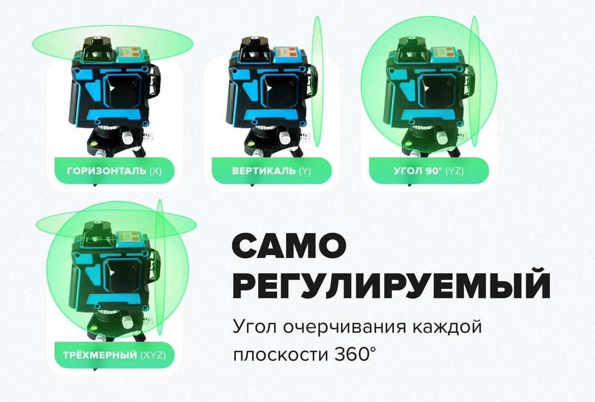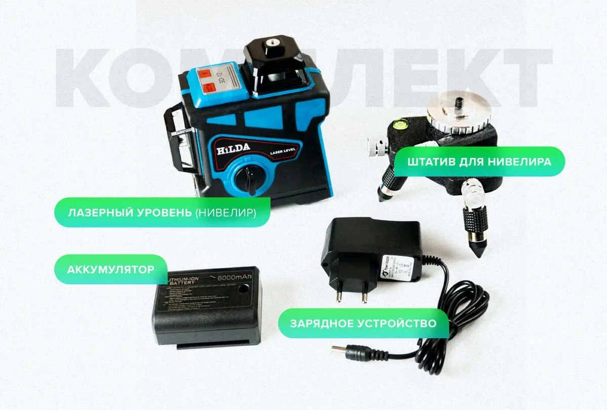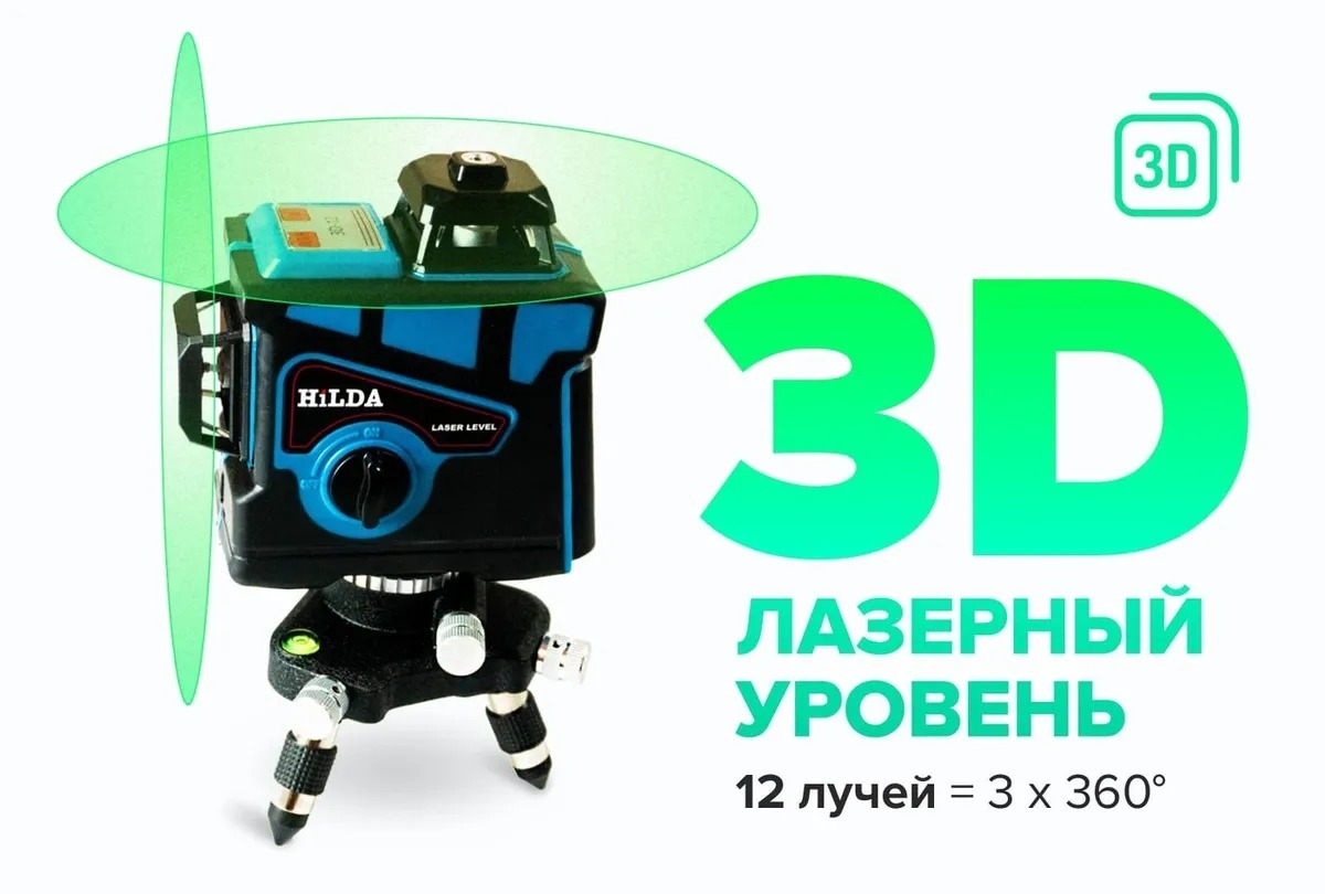 Лазерный уровень/нивелир Hilda самовыравнивающийся 360 4d, Зеленый луч