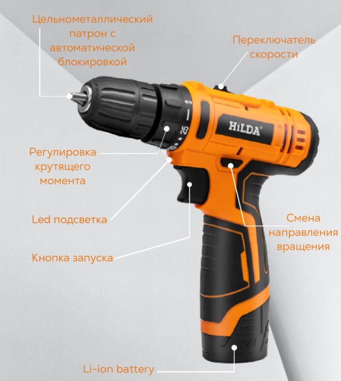 Шуруповерт Hilda /Z2V12A32/, От аккумулятора, 12 В, 30 Нм, 1 АКБ