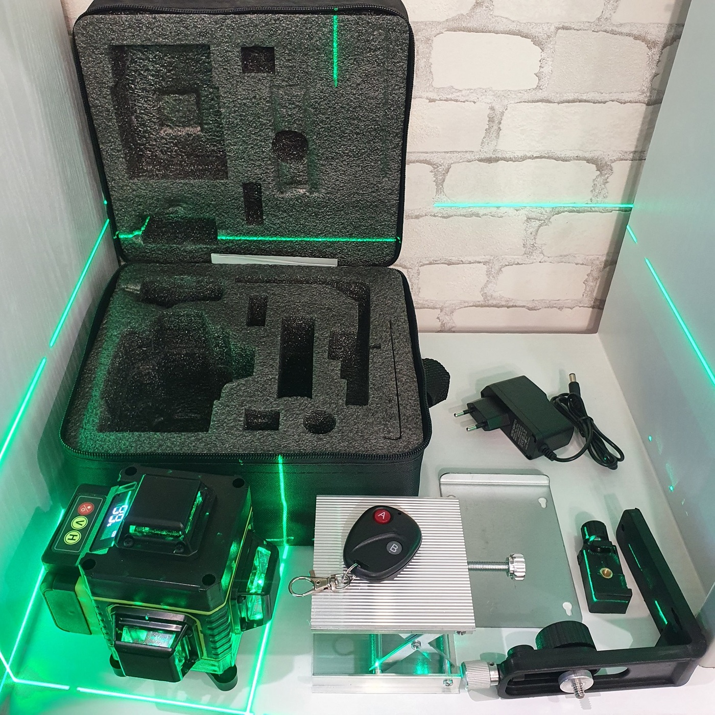 Лазерный уровень/нивелир Hilda 4d/ 16 линий в кейсе, Зеленый луч
