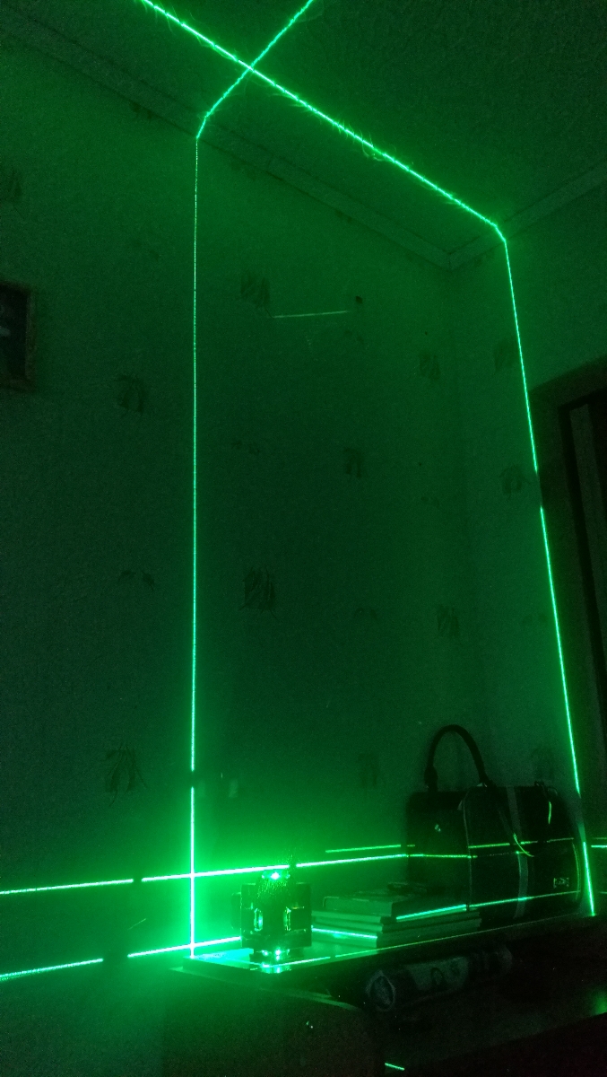 Лазерный уровень/нивелир Hilda 3D 12 линий, зелёный, нижний луч, Зеленый луч