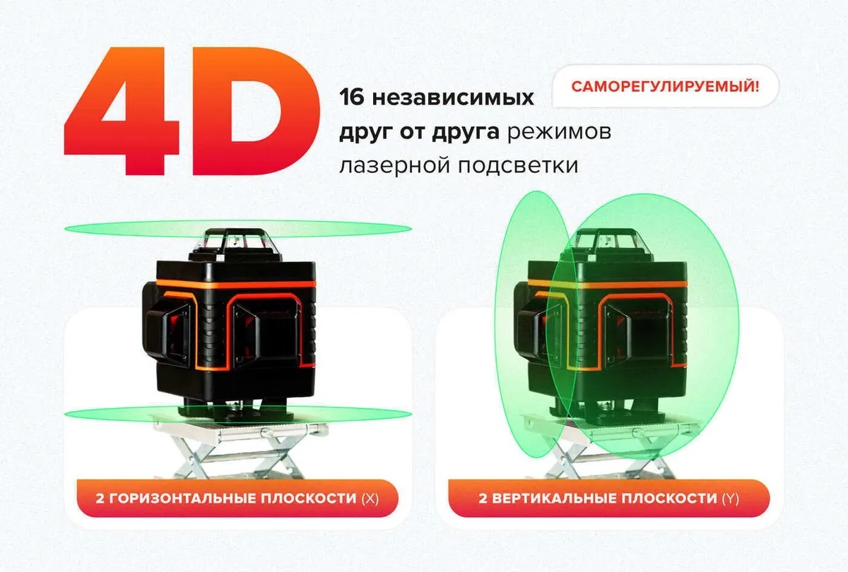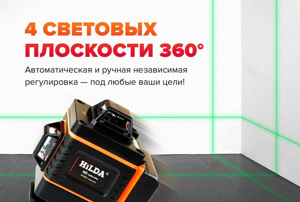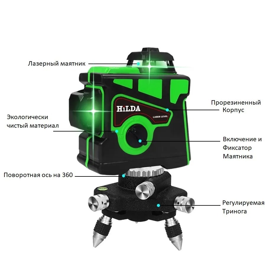 Лазерный уровень/нивелир Hilda самовыравнивающийся 360 4d, Зеленый луч