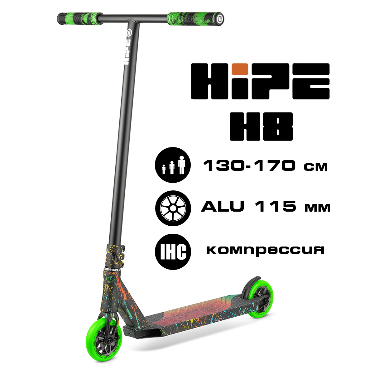 Самокат Трюковой HIPE H12 Черный/зеленый 2021, 110 мм
