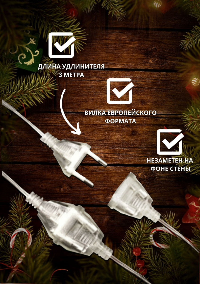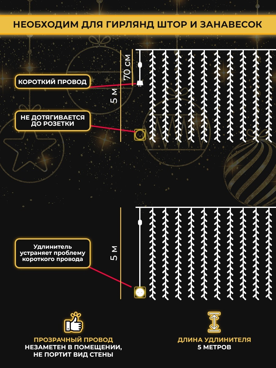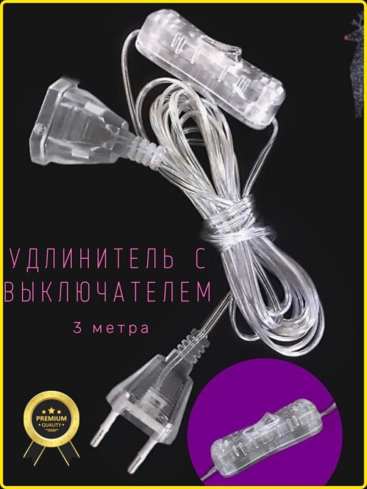 Удлинитель для гирлянд с выключателем! Hold Me, прозрачный, 3 метра, набор из 2 штук