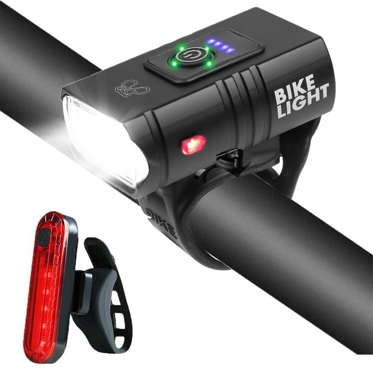 Фонарь на руль велосипеда/самоката (передний + задний). Алюм. корпус, 2xT6 Led 400 лм. Встр. аккум.
