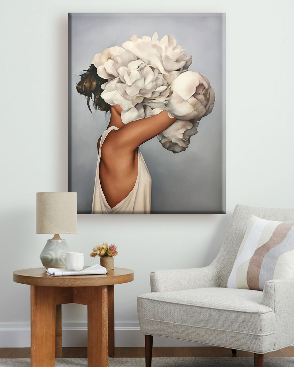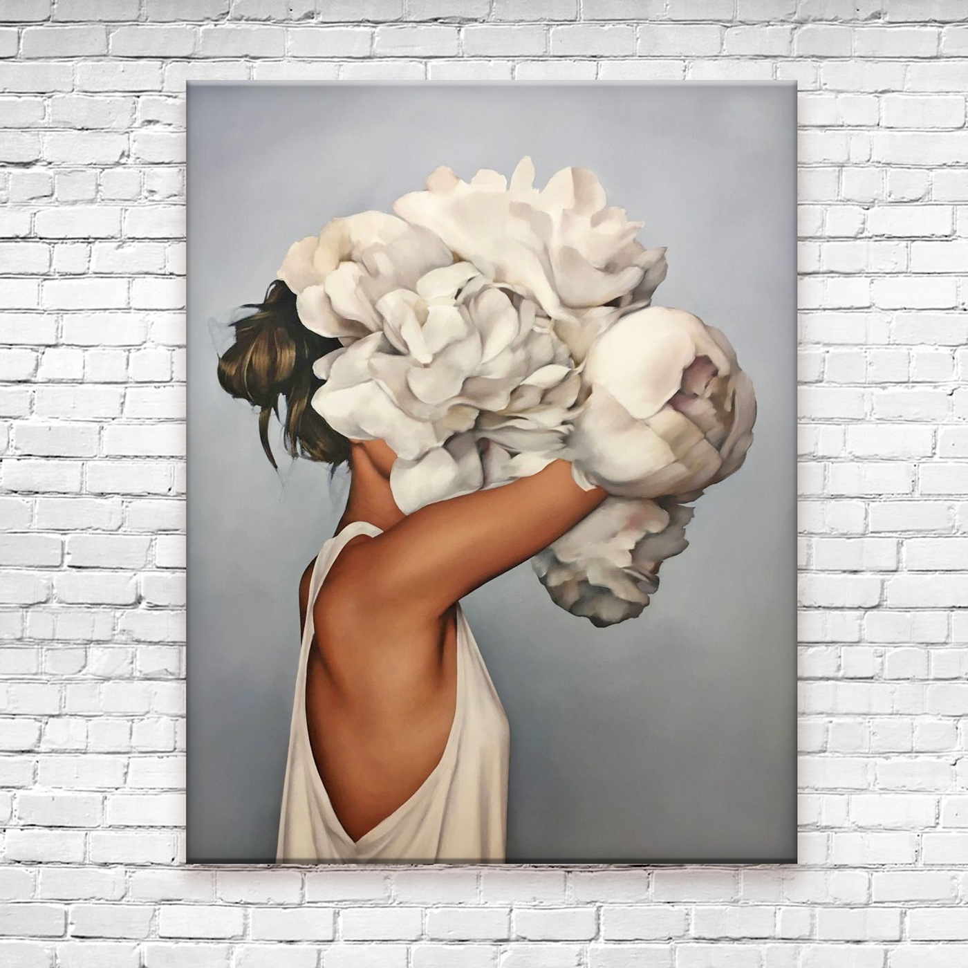 Картина на холсте "Девушка с Пионами" 55х80см, Интерьерная картина на холсте, holst-me