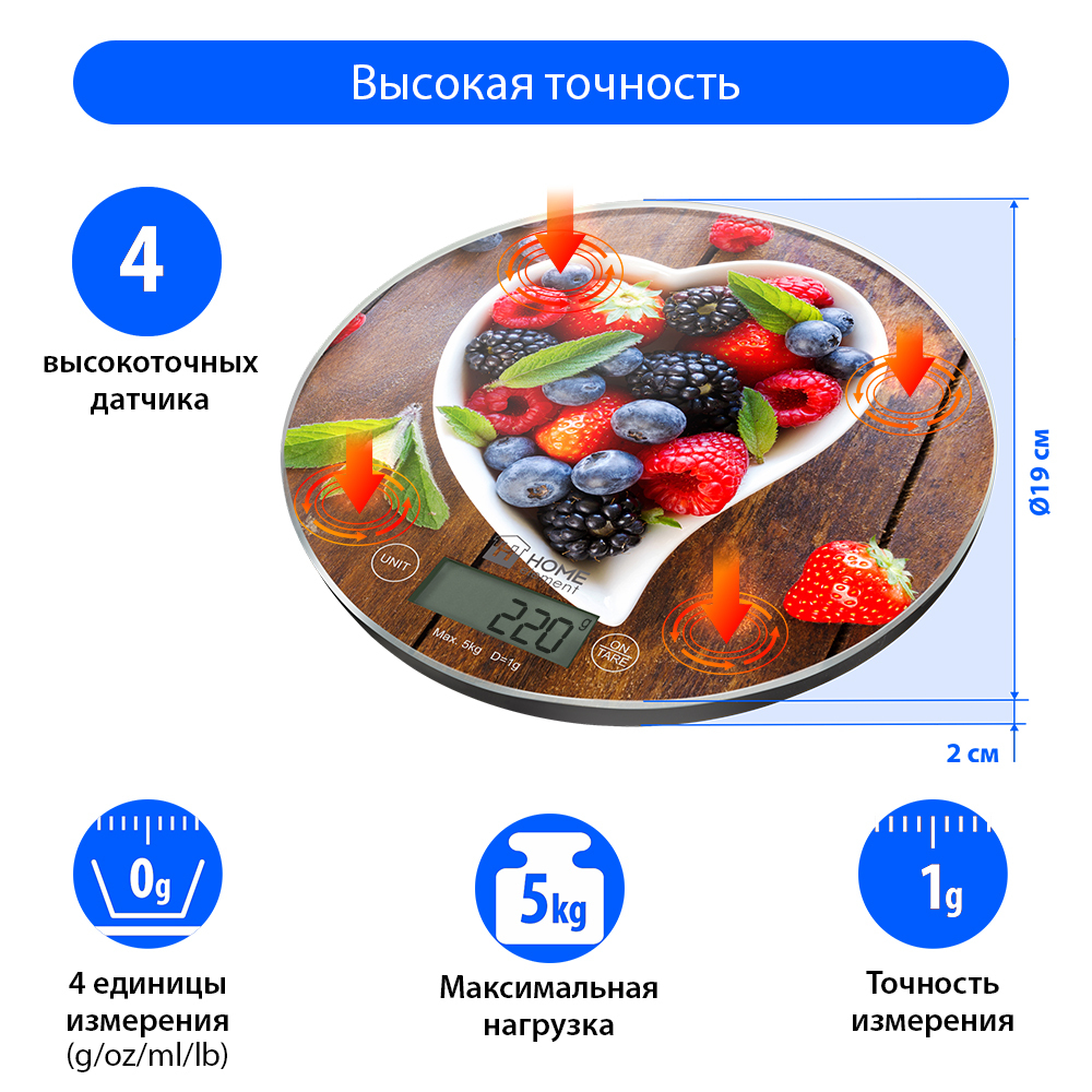 Электронные Кухонные весы Home Element HE-SC933, красный, синий