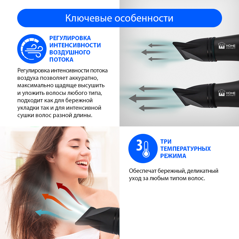 Фен для волос Home Element HE-HD318, бордовый