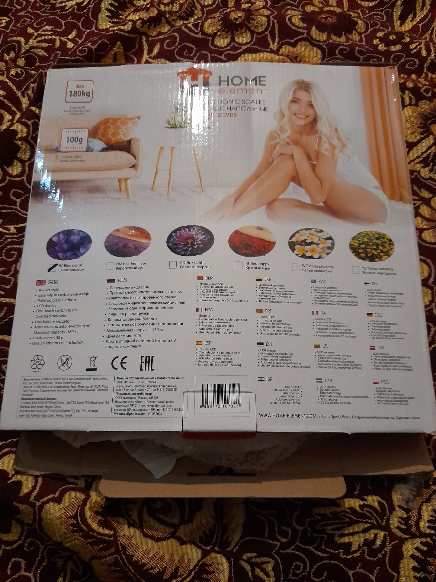 Напольные весы Home Element HOMESTAR HS-6001L, электронные, до 180 кг, стекло, разноцветный