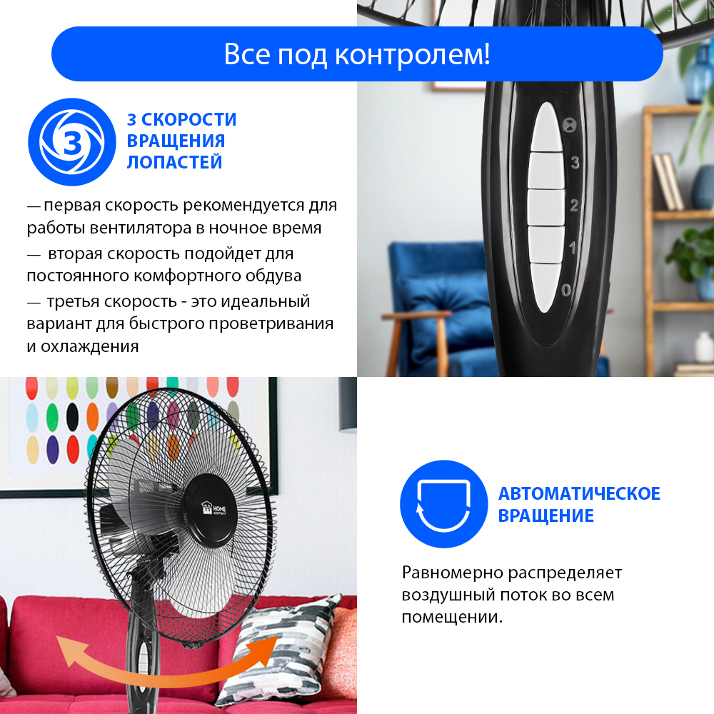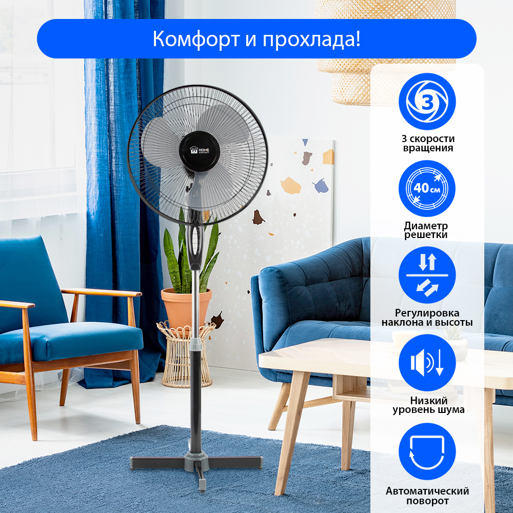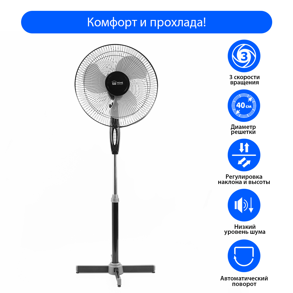 Напольный вентилятор Home Element HE-FN1205/вентилятор напольный 50Вт, серый