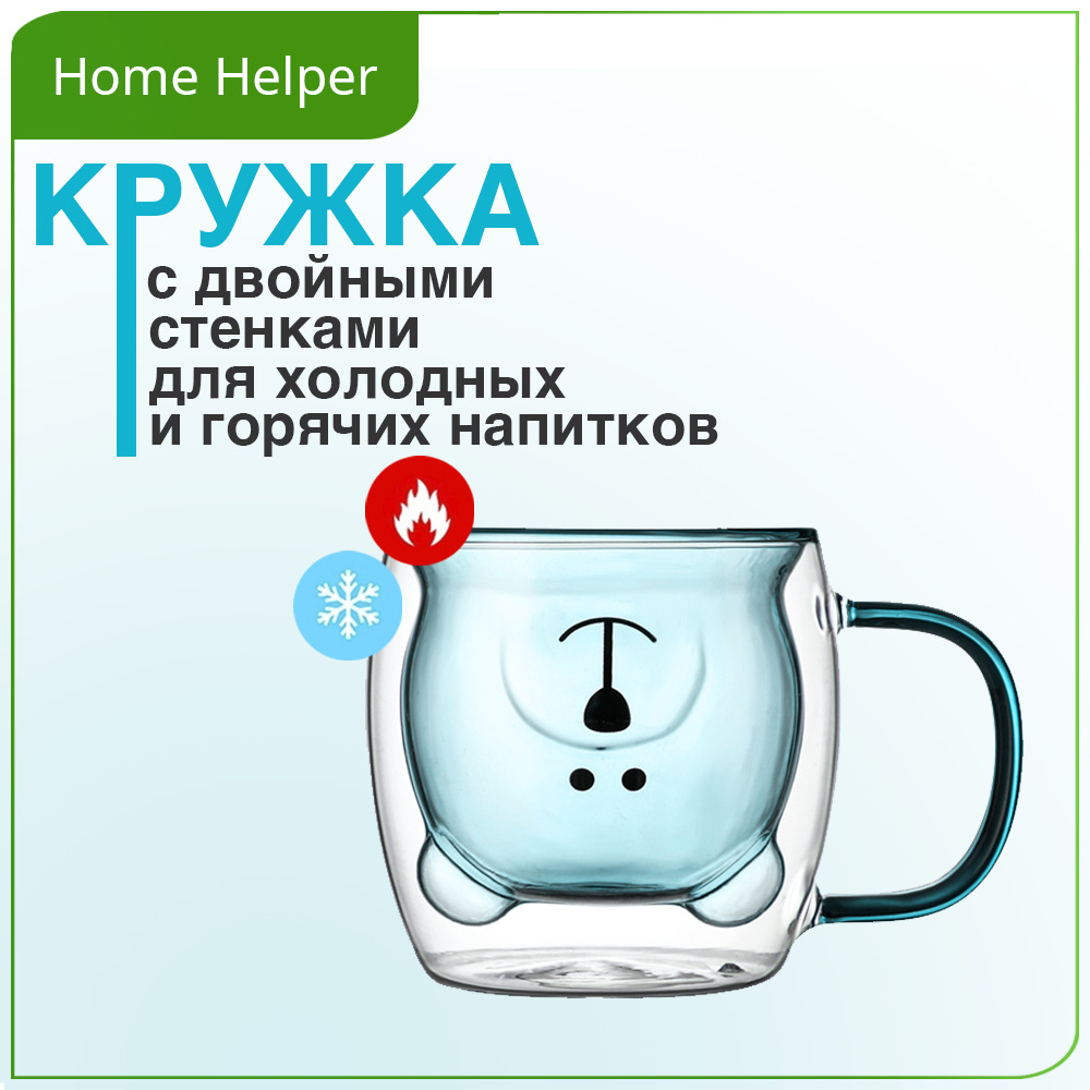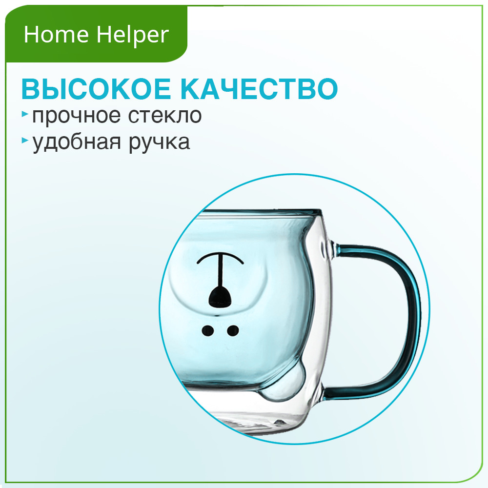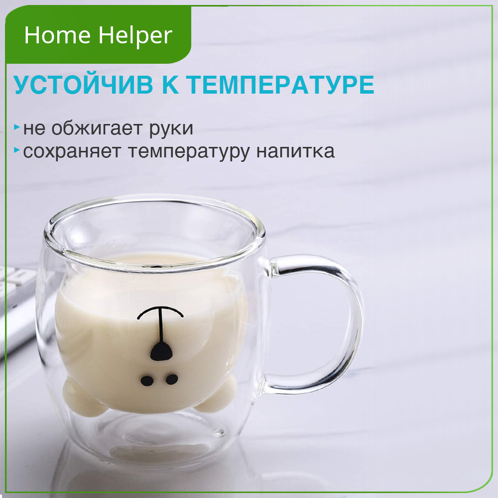 Стакан для чая/кофе Home Helper "Новогодний медведь", 250 мл, 1 шт