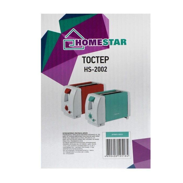 Тостер HomeStar GL 2907, зеленый, белый