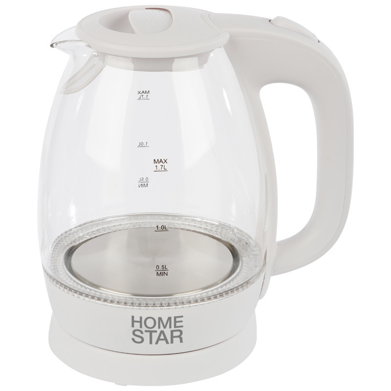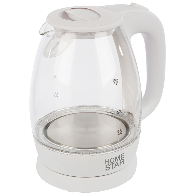 Homestar HS-1012 чайник электрический дисковый, 1.7л, 1850-2200Вт, стеклянный, белый