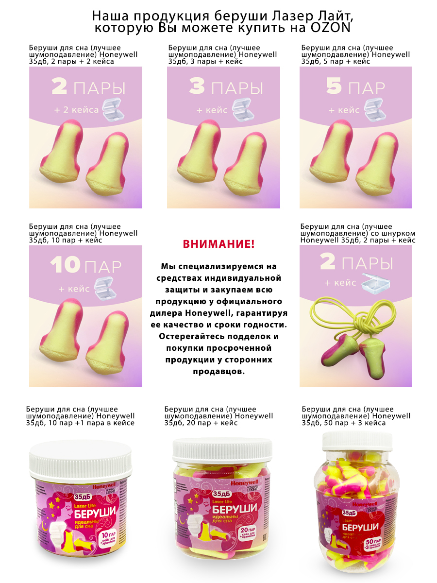 Honeywell Беруши для сна (лучшее шумоподавление) Honeywell 35дб, 10 пар + 1 пара в кейсе